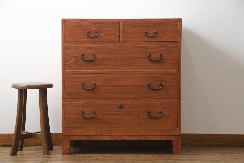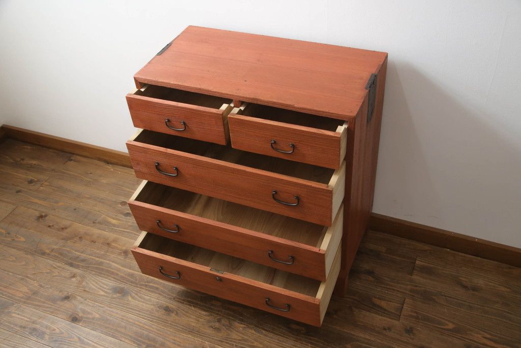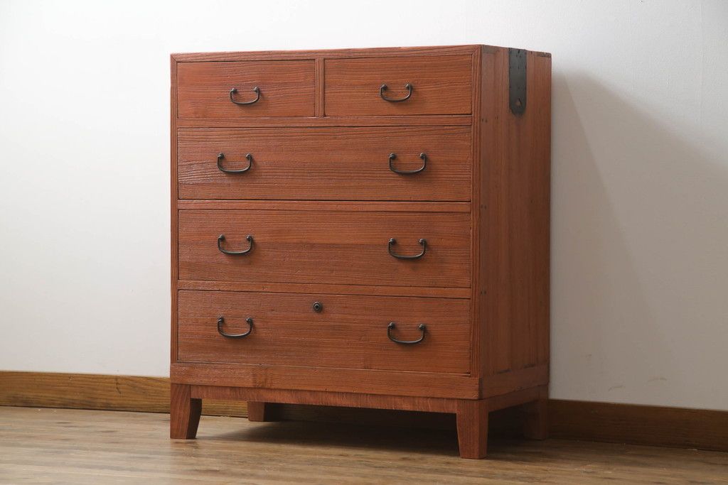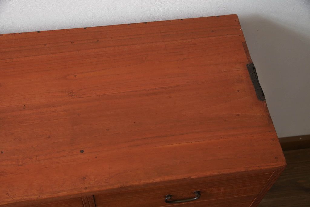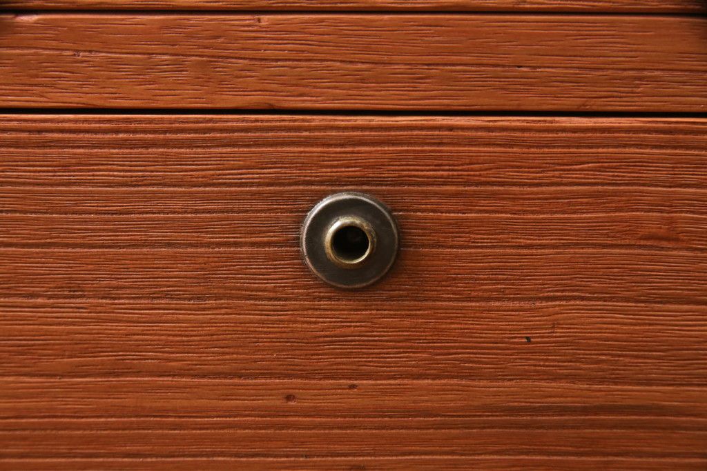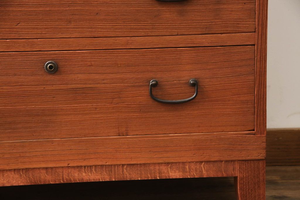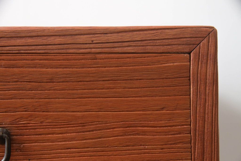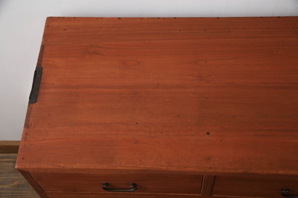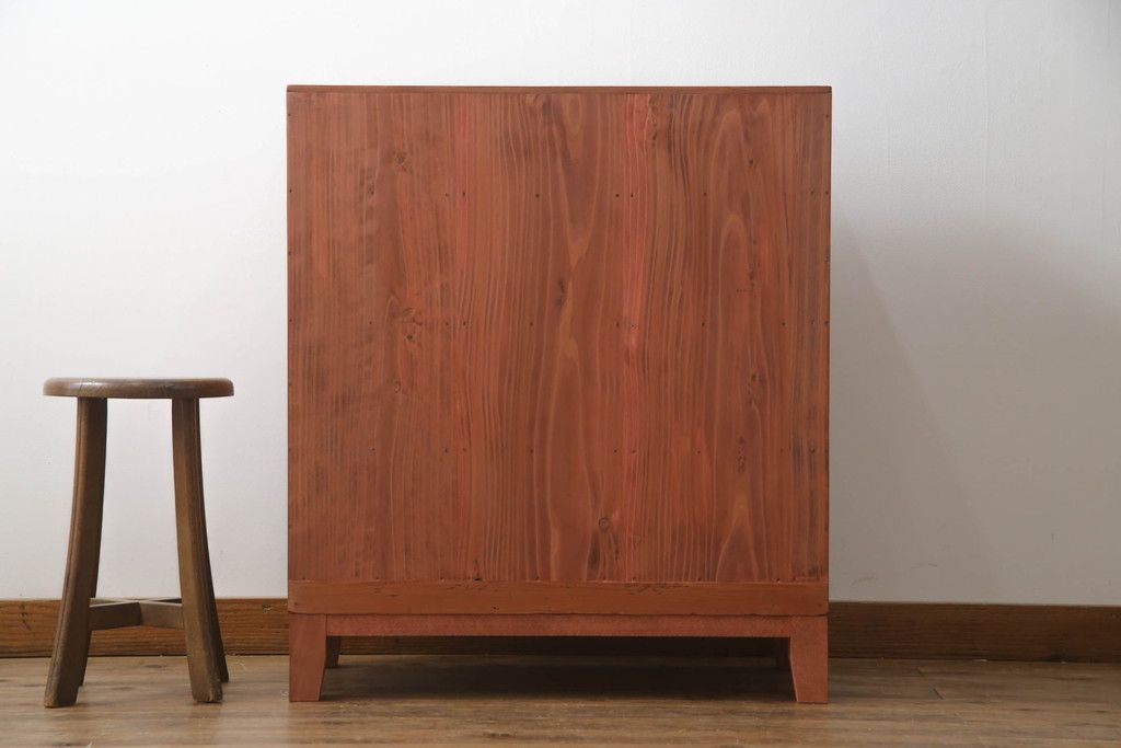 桐箪笥をチェストにリメイク!!ご購入予定のお仏壇の色に合わせて、全体を赤みがかった色に着色。天板を補強し、脚を取り付け。