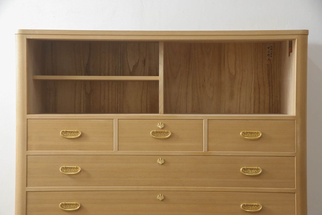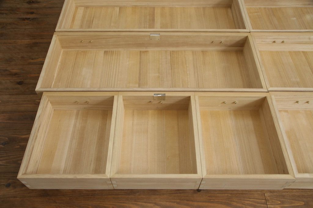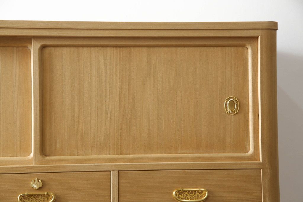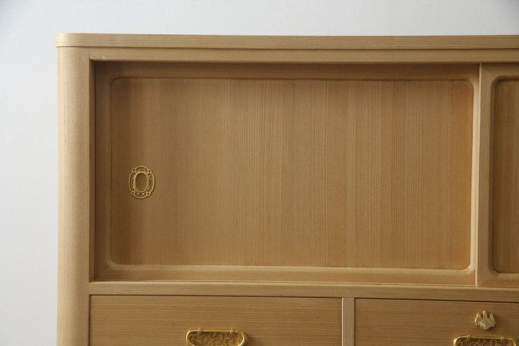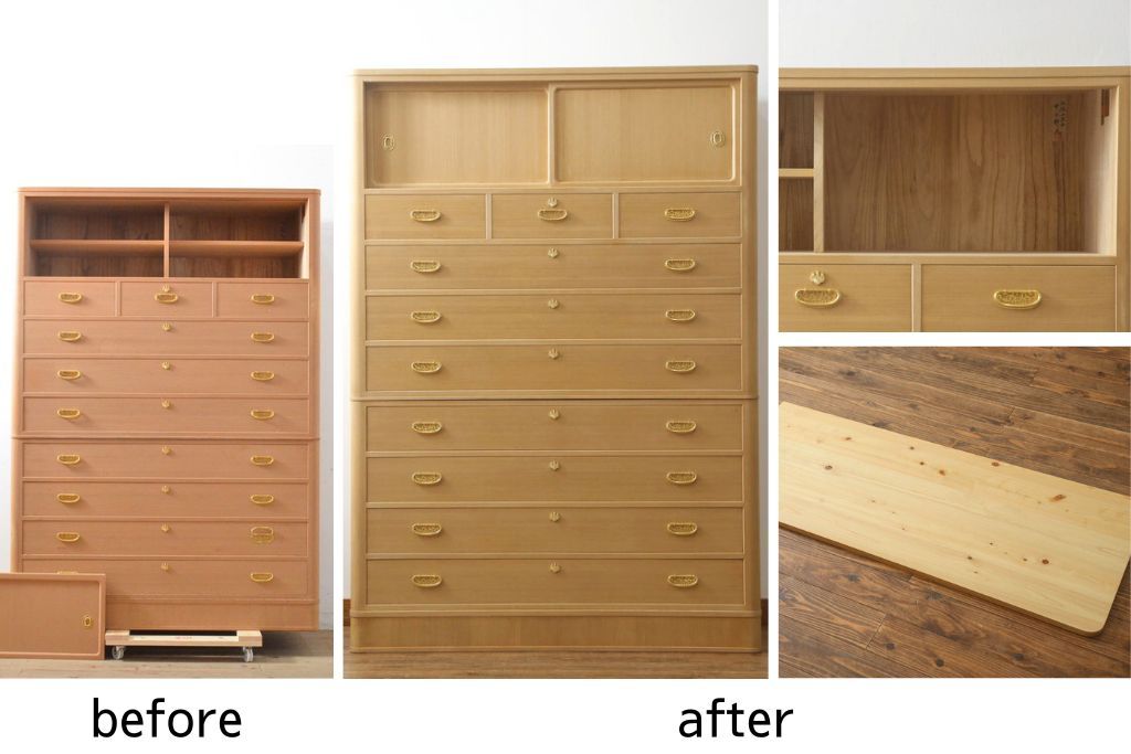 和箪笥> 衣装箪笥 > 総桐箪笥をリペア&カスタム!上段右側の棚板を取り外し、畳に跡がつくのを軽減させるための下敷き板を新規製作。砥の粉を落としクリアワックスで仕上げ。(胴丸、和タンス、桐たんす、収納箪笥、衣装タンス)