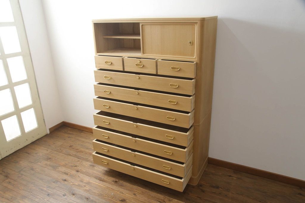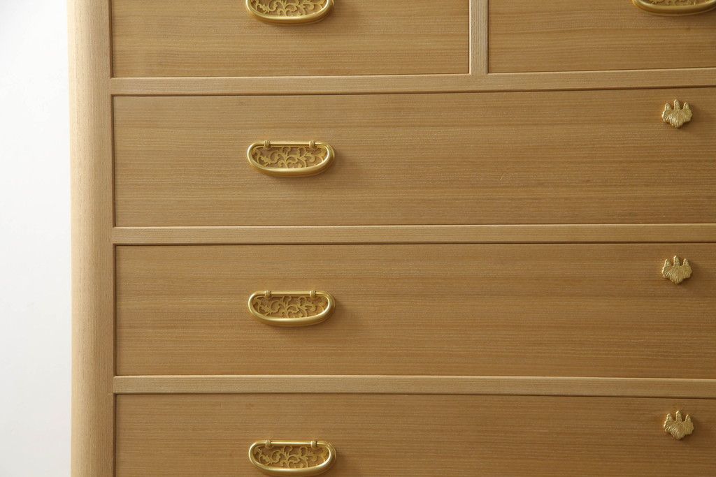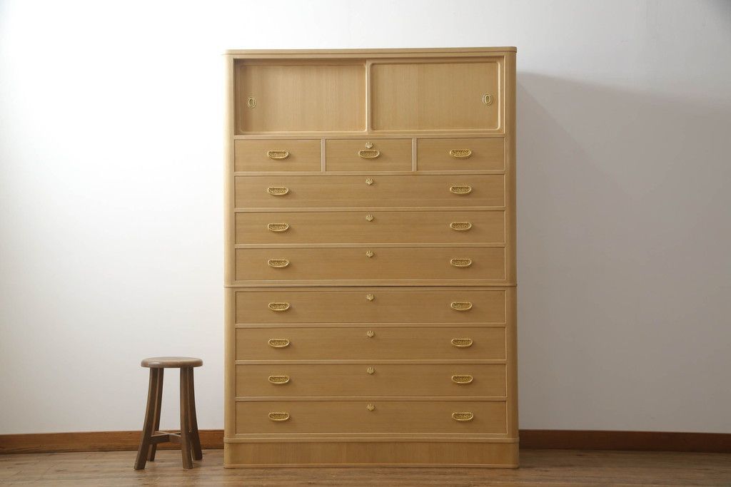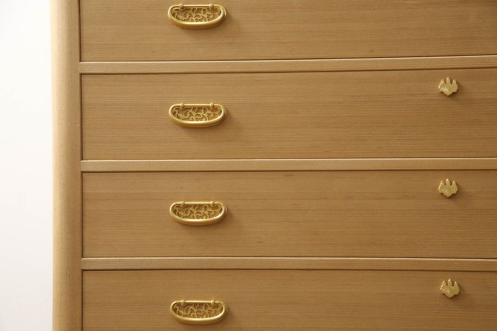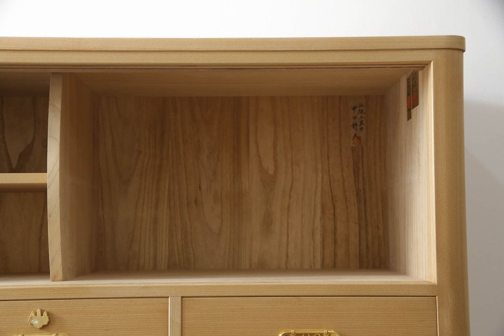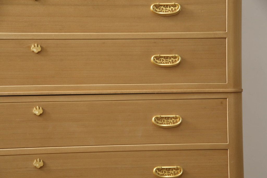 和箪笥> 衣装箪笥 > 総桐箪笥をリペア&カスタム!上段右側の棚板を取り外し、畳に跡がつくのを軽減させるための下敷き板を新規製作。砥の粉を落としクリアワックスで仕上げ。(胴丸、和タンス、桐たんす、収納箪笥、衣装タンス)