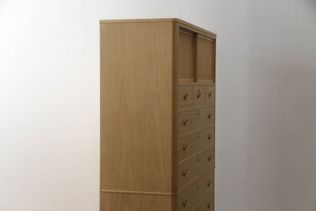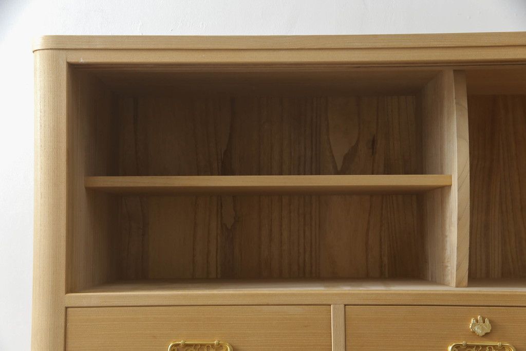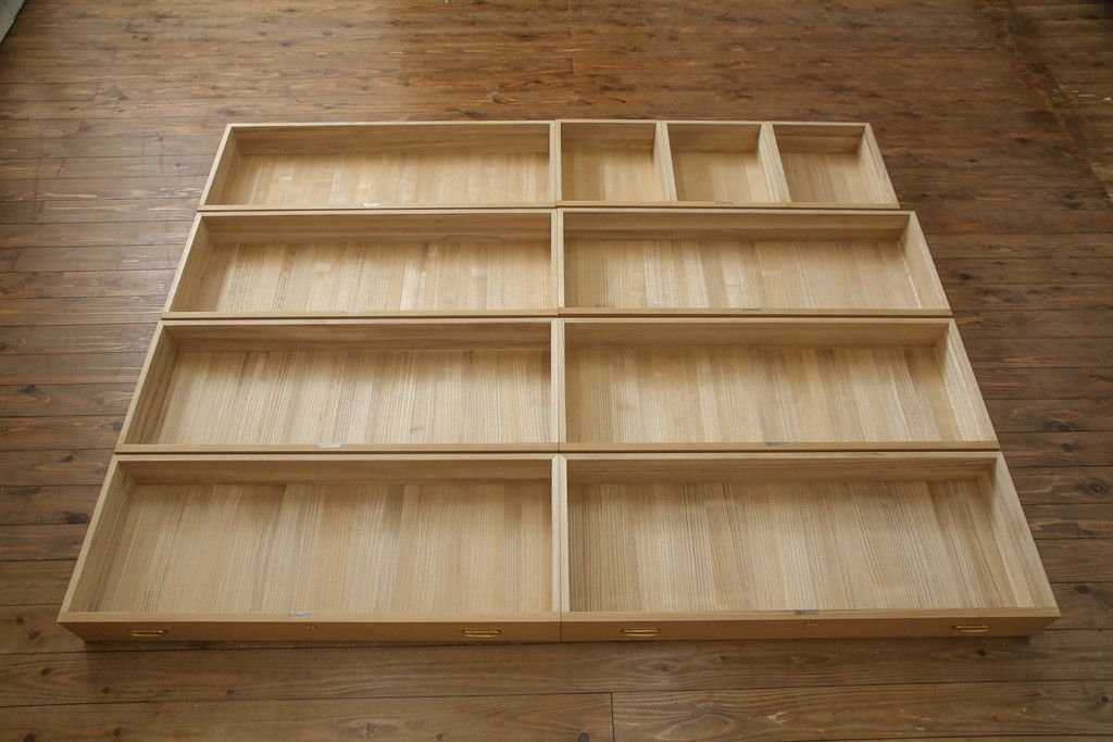 民芸家具 > 総桐箪笥をリペア&カスタム!上段右側の棚板を取り外し、畳に跡がつくのを軽減させるための下敷き板を新規製作。砥の粉を落としクリアワックスで仕上げ。(胴丸、和タンス、桐たんす、収納箪笥、衣装タンス)