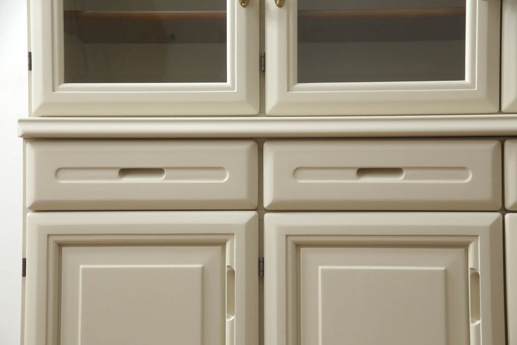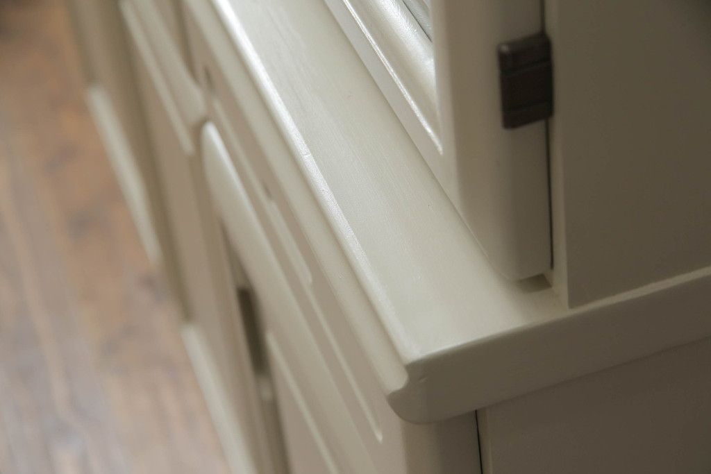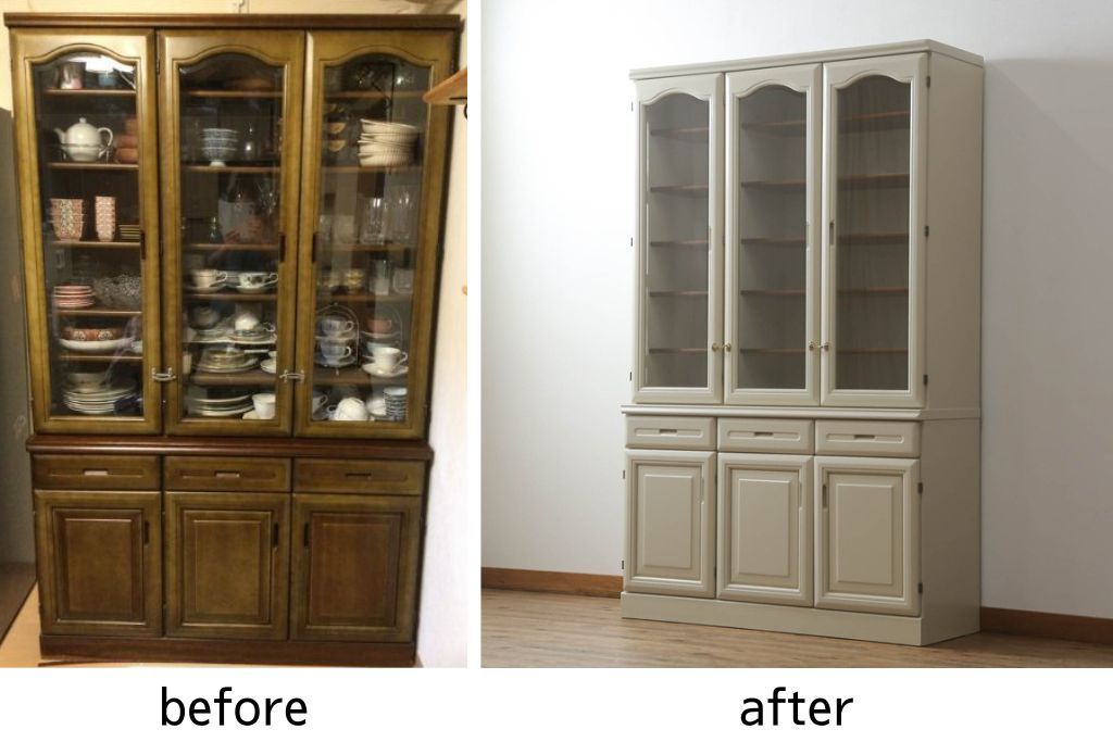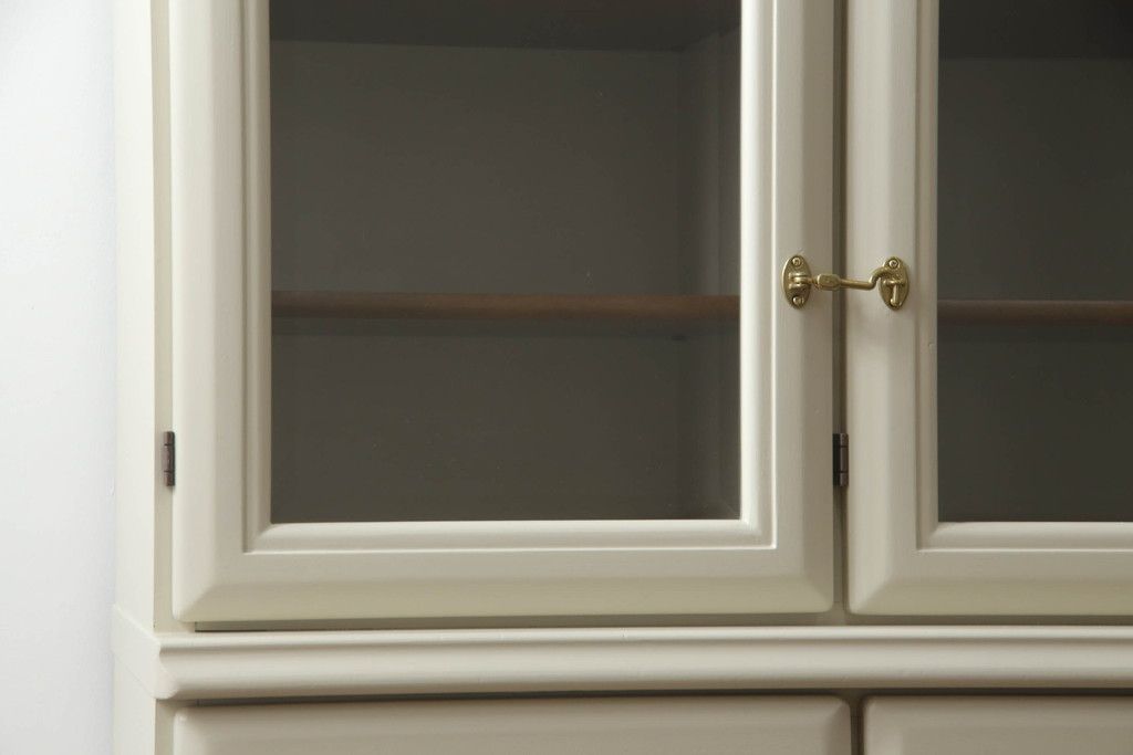食器棚をペイントリメイク!煽り止め金具を取り付け、当店商品を参考に全体をオフホワイトでペイント。