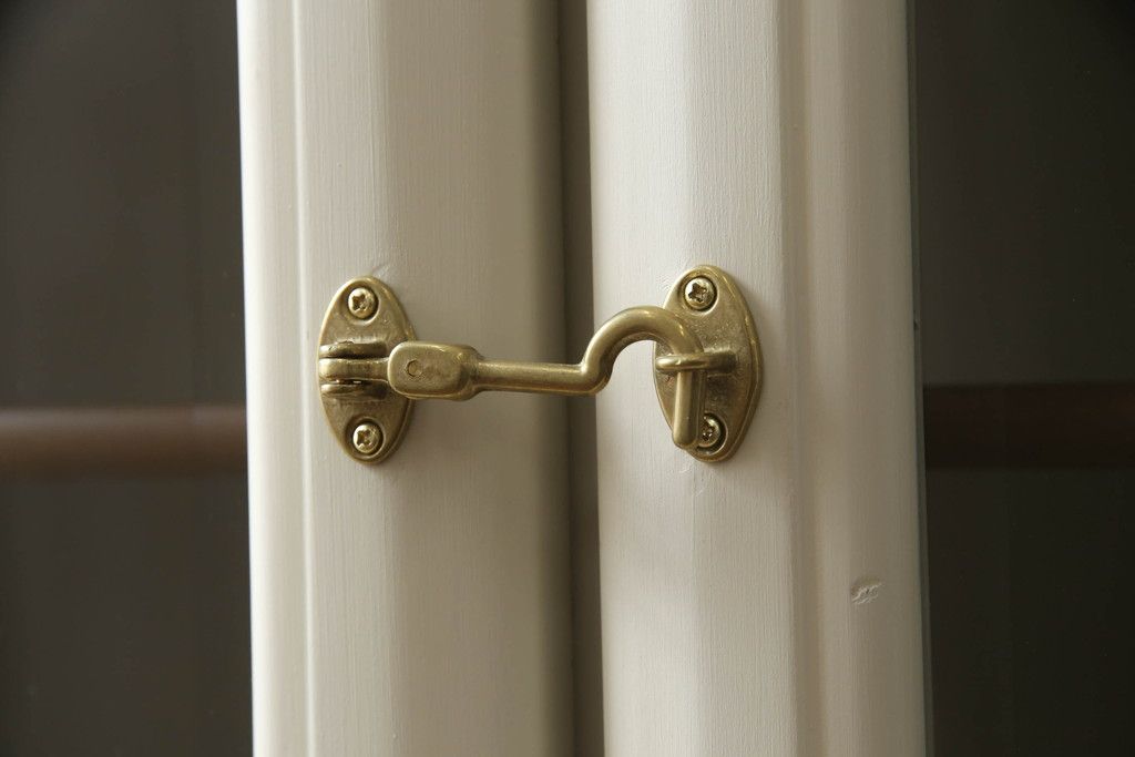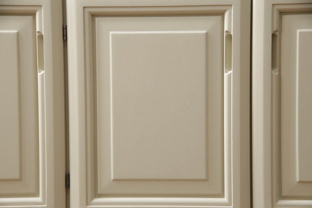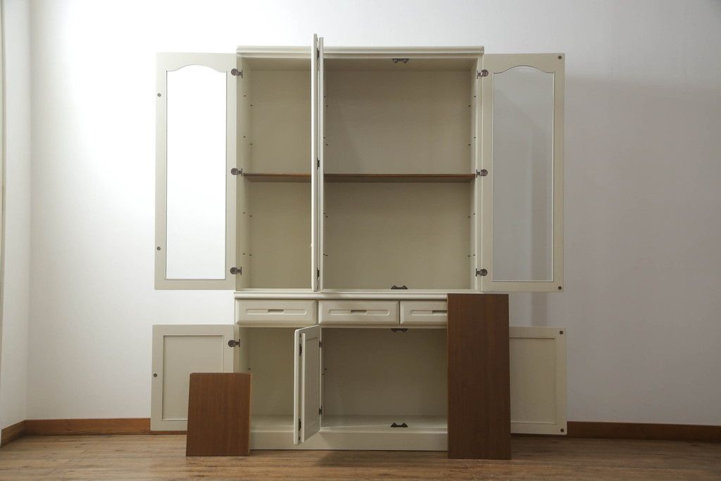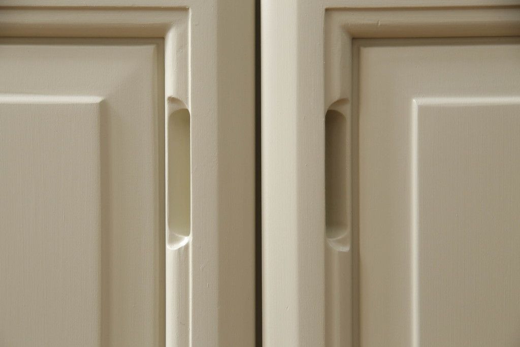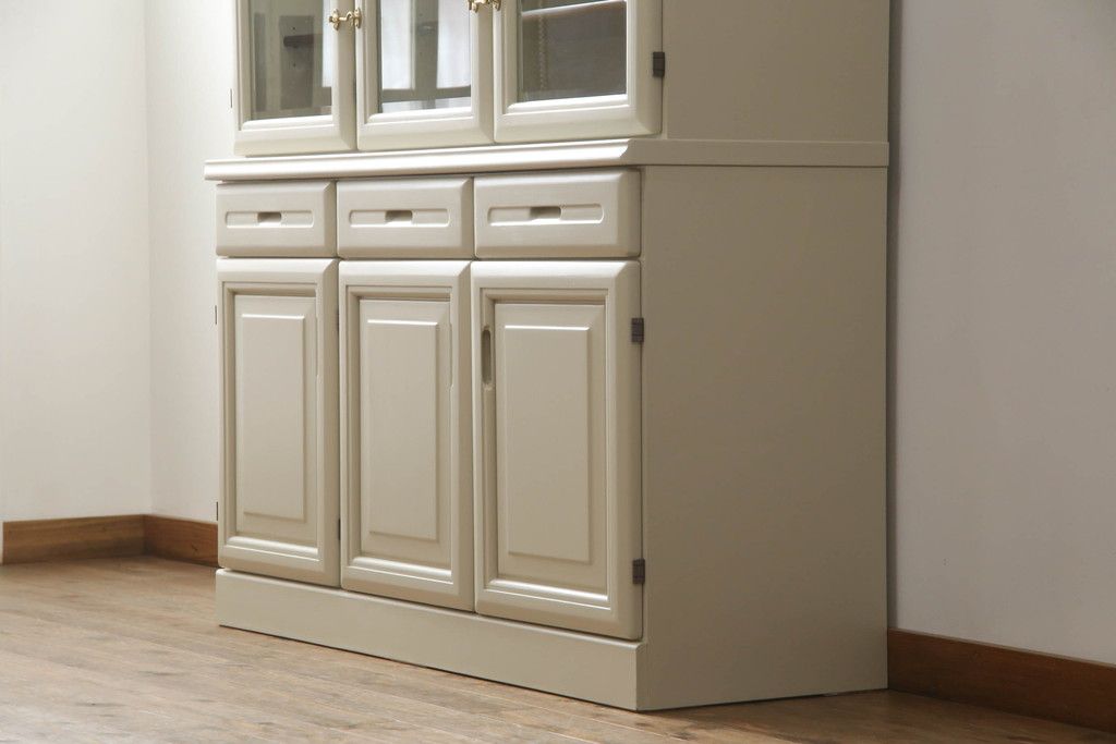食器棚をペイントリメイク!煽り止め金具を取り付け、当店商品を参考に全体をオフホワイトでペイント。