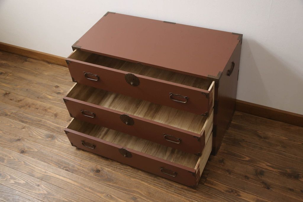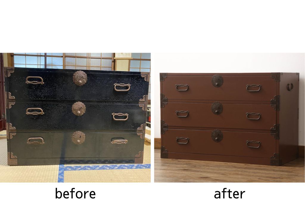 桐箪笥をペイントリメイク!クリーニング後、シナモンブラウンでペイント。クリアワックスで仕上げ。