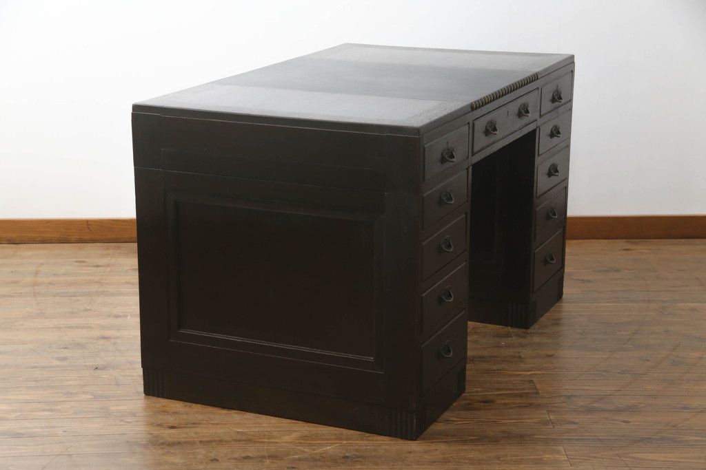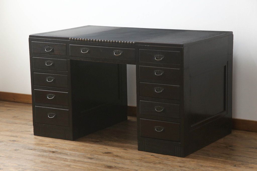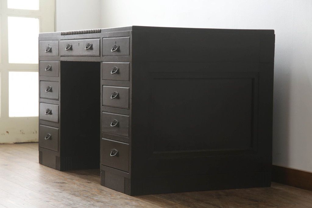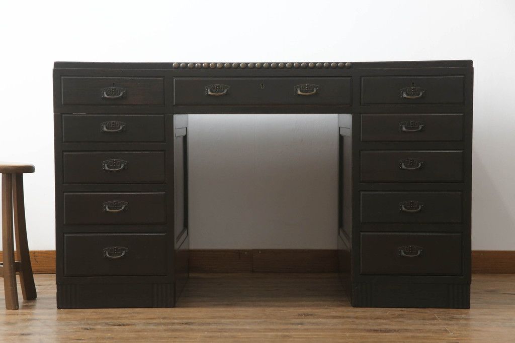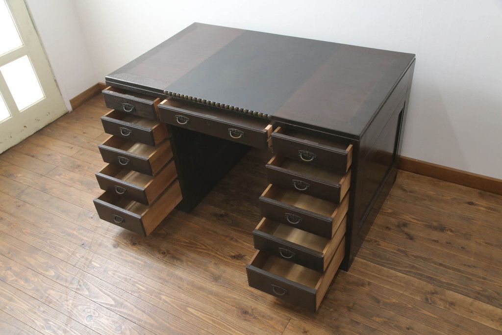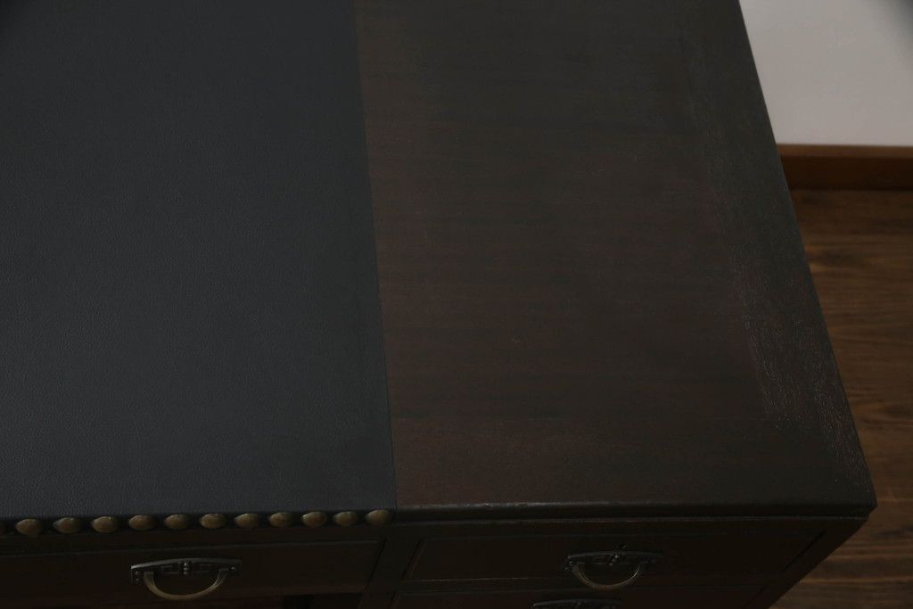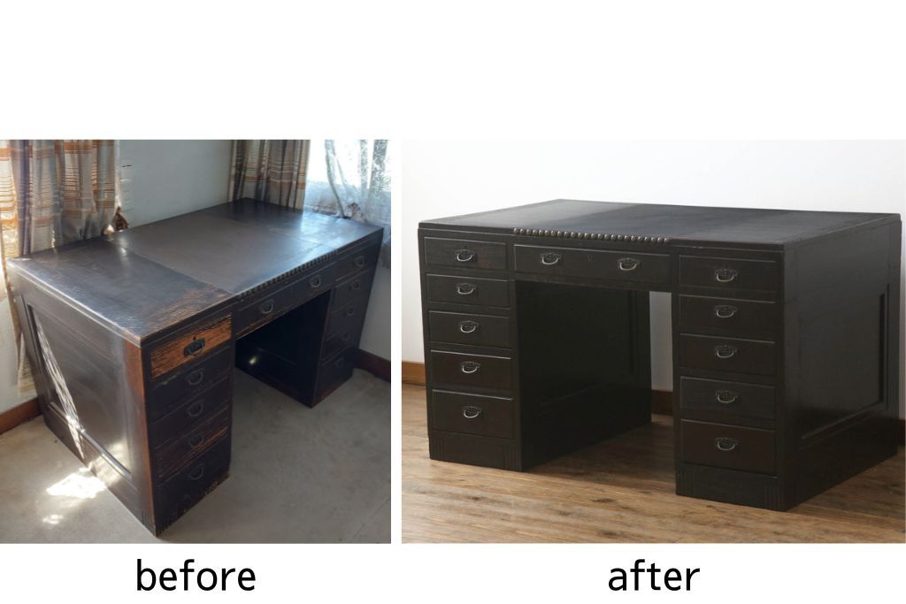 両袖机を綺麗に再生!天板を補強し、レザートップも張り替え。分割して搬入できるよう、全体を3分割仕様へ。