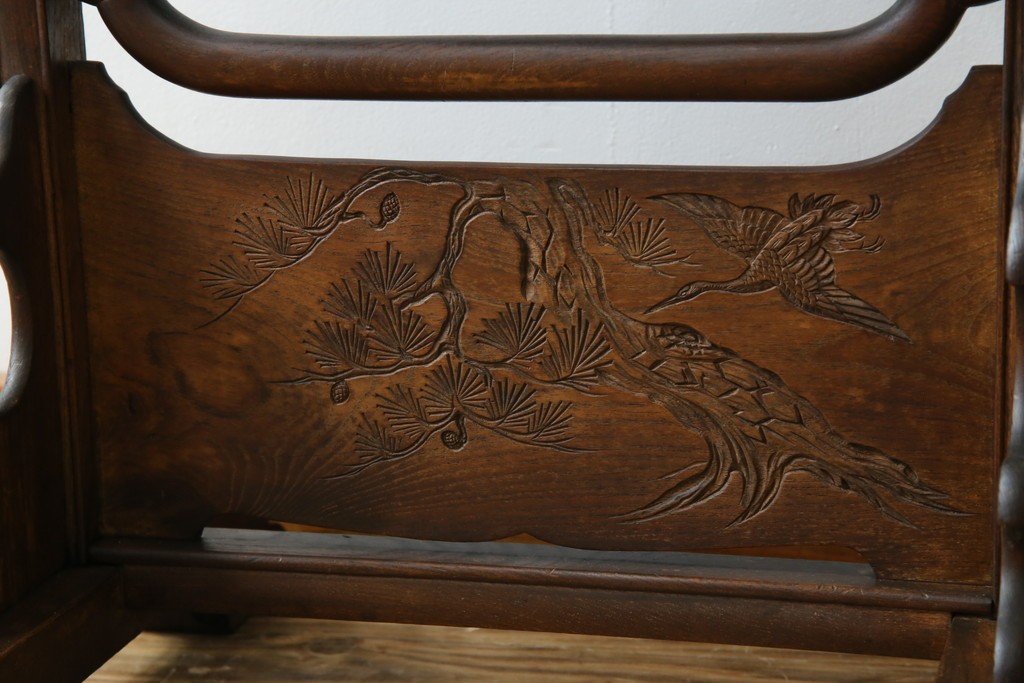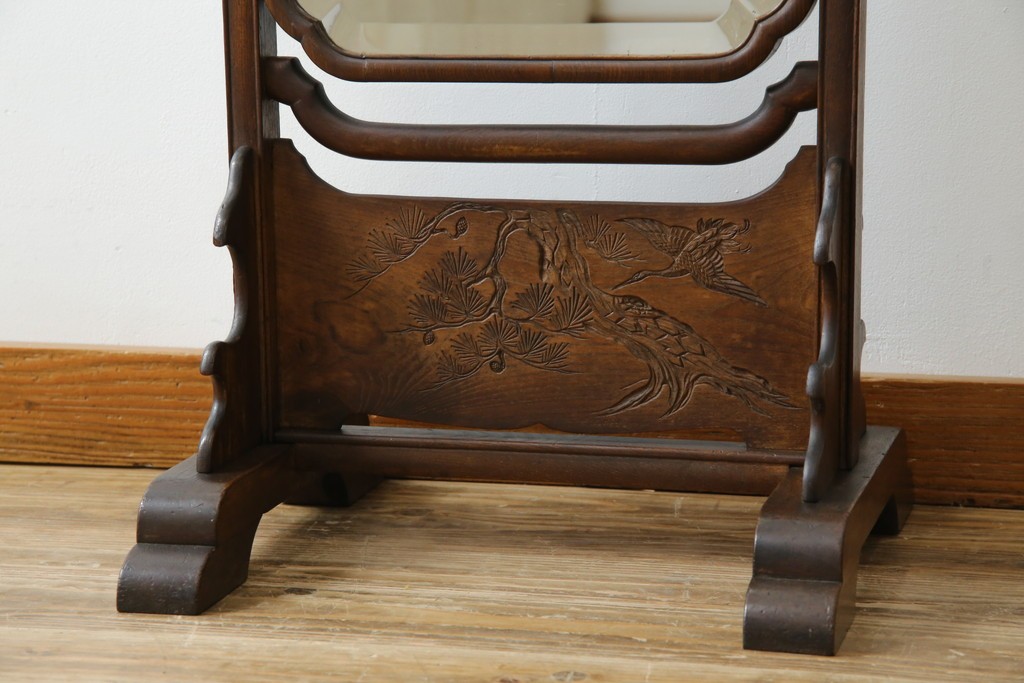 和製アンティーク 高級品!! 総桑材 上質な和の空間づくりにおすすめの彫刻入り姿見 (R-076026)