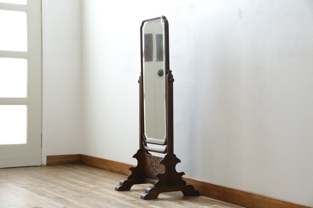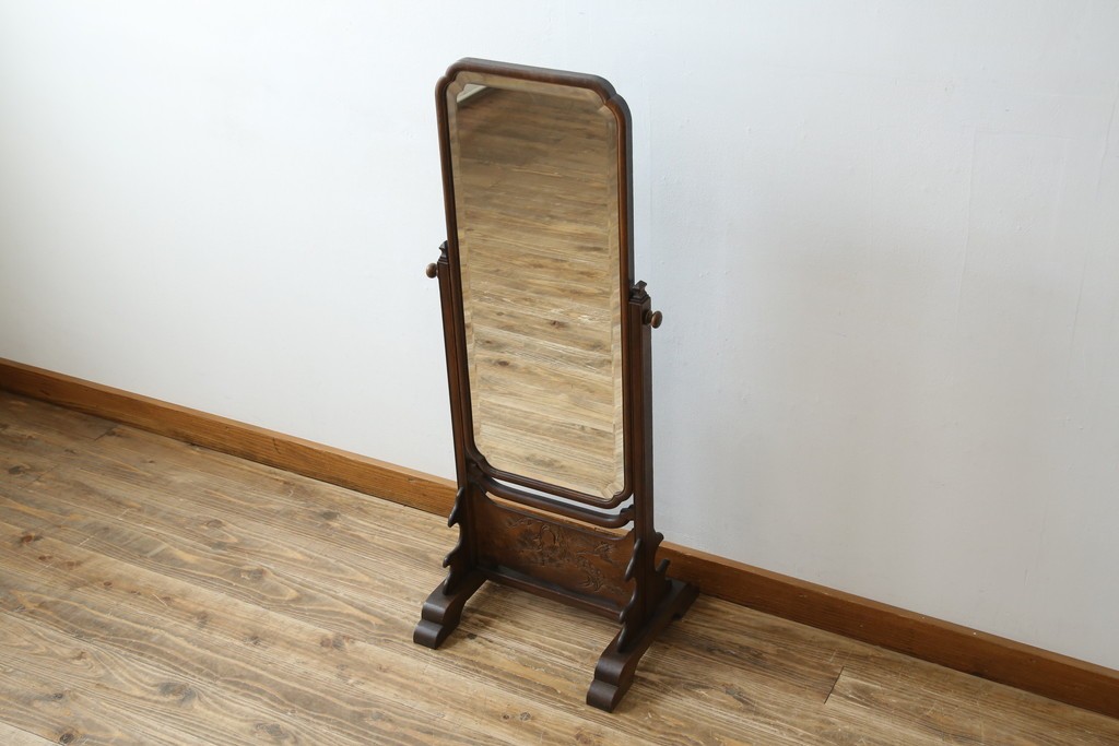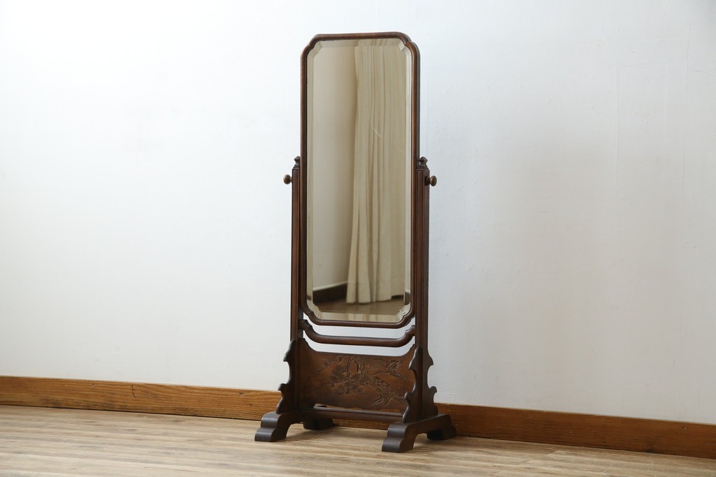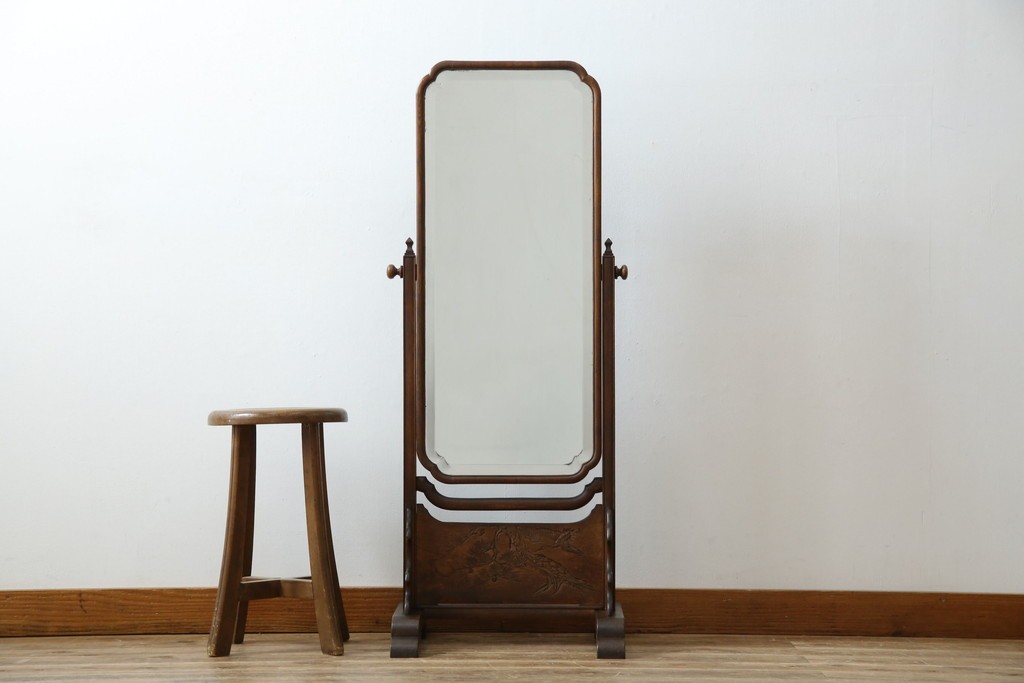 鏡 > 和製アンティーク 高級品!! 総桑材 上質な和の空間づくりにおすすめの彫刻入り姿見 (R-076026)