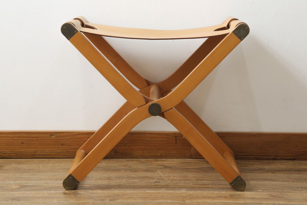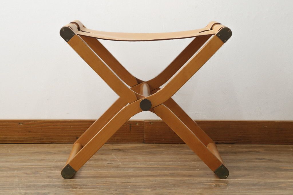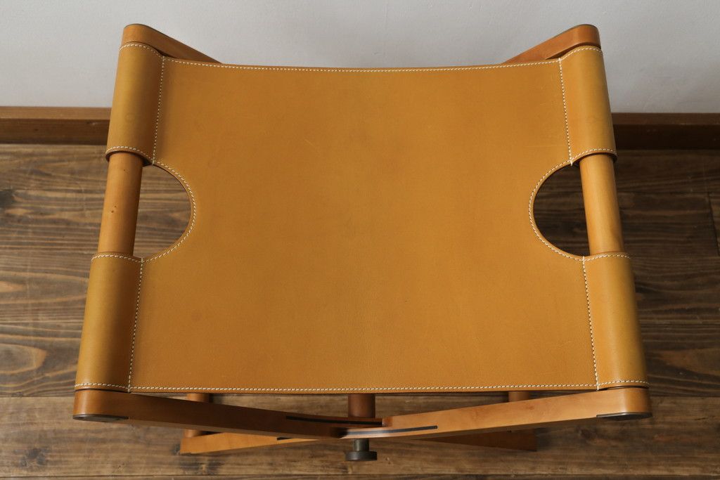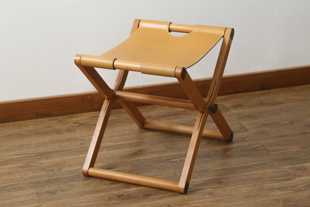 椅子・ベンチ> 折りたたみチェア > 中古 HERMES(エルメス) 本革 PIPPAシリーズ イエローカラーのレザーが魅力的な折り畳み式チェア(スツール、折りたたみ、イス)(定価約160万円)(R-076033)
