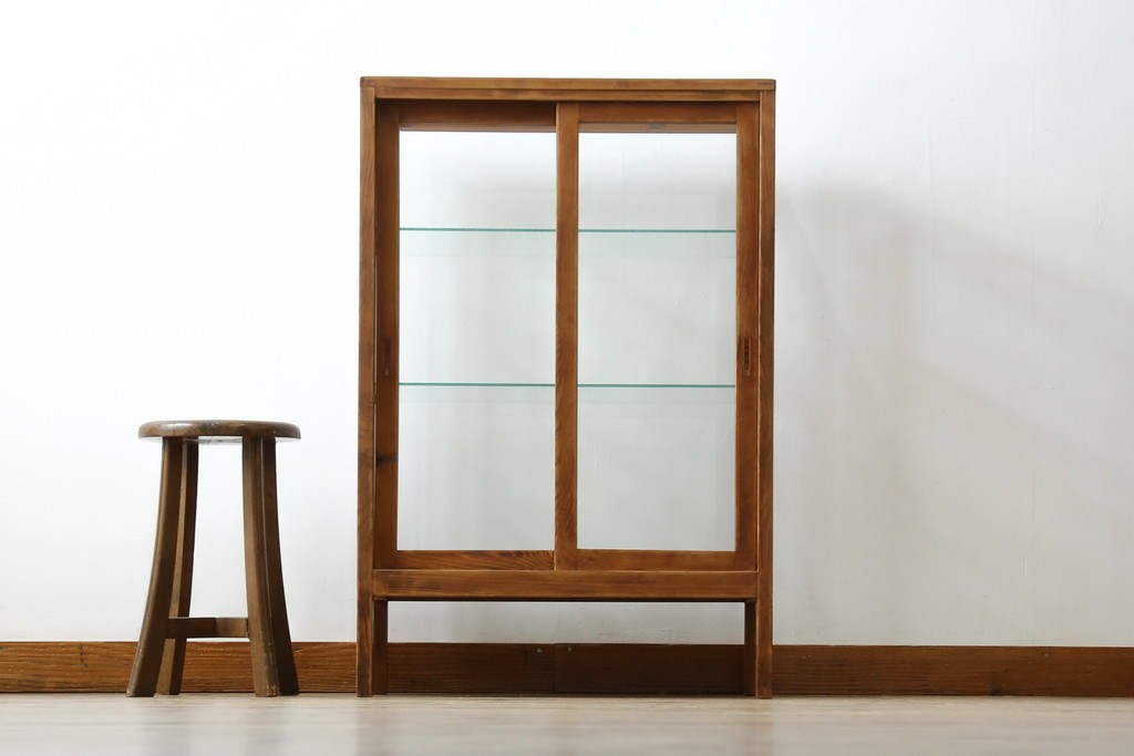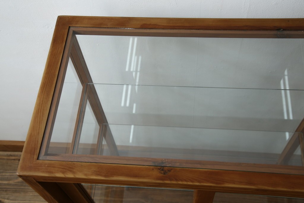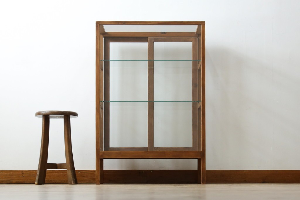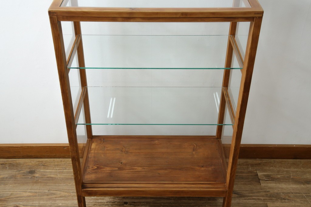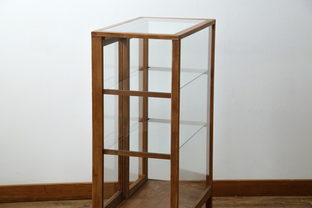 和製アンティーク 昔懐かしい雰囲気漂うシンプルで小振りな脚付きガラスケース(ショーケース)(R-076278)