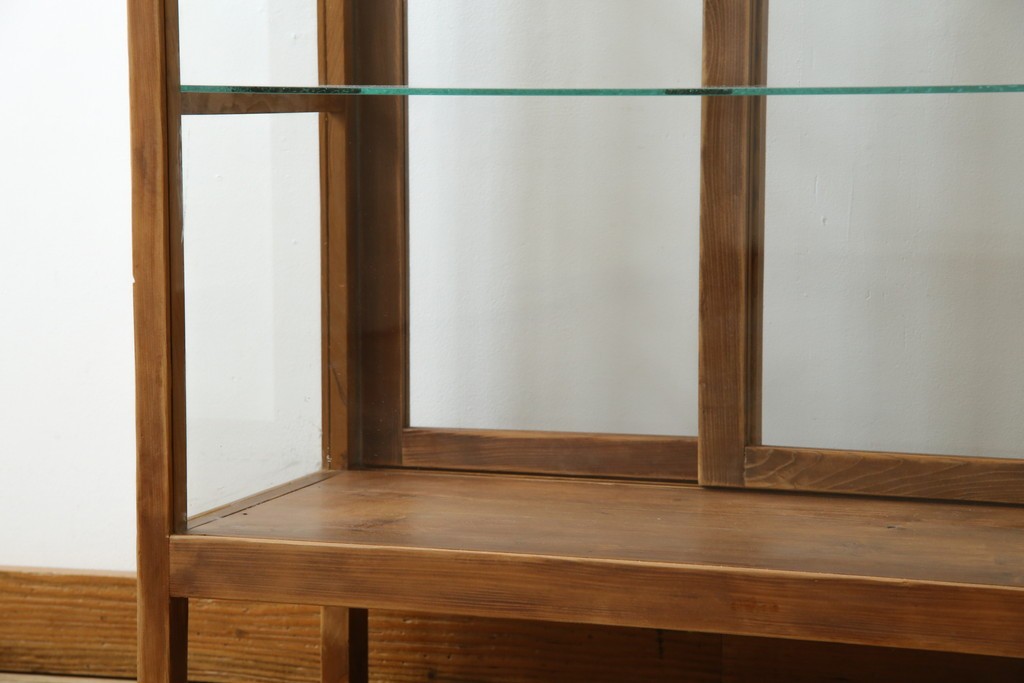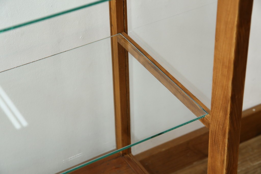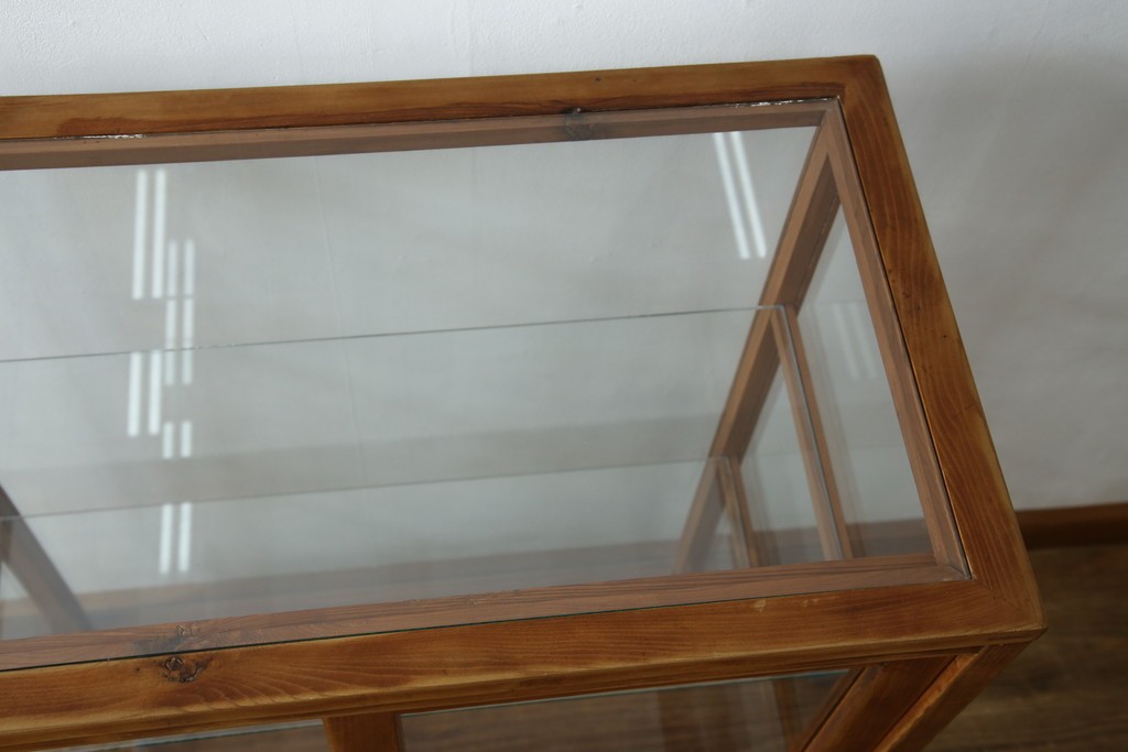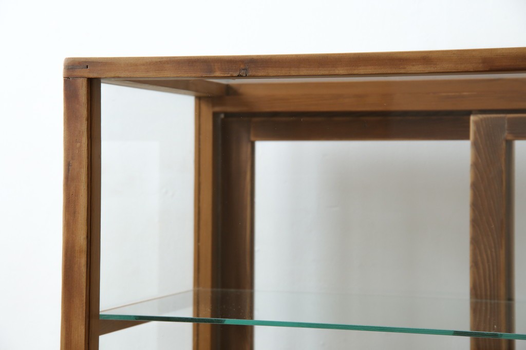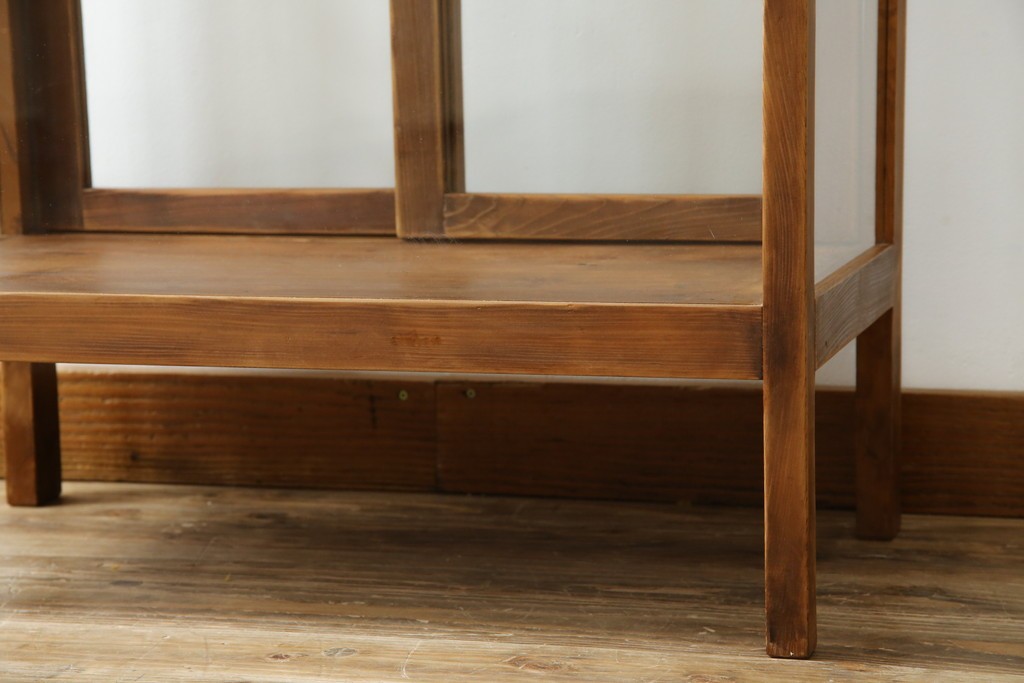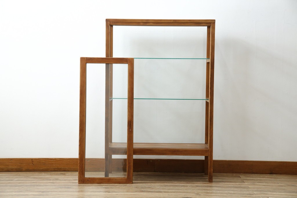 和製アンティーク 昔懐かしい雰囲気漂うシンプルで小振りな脚付きガラスケース(ショーケース)(R-076278)