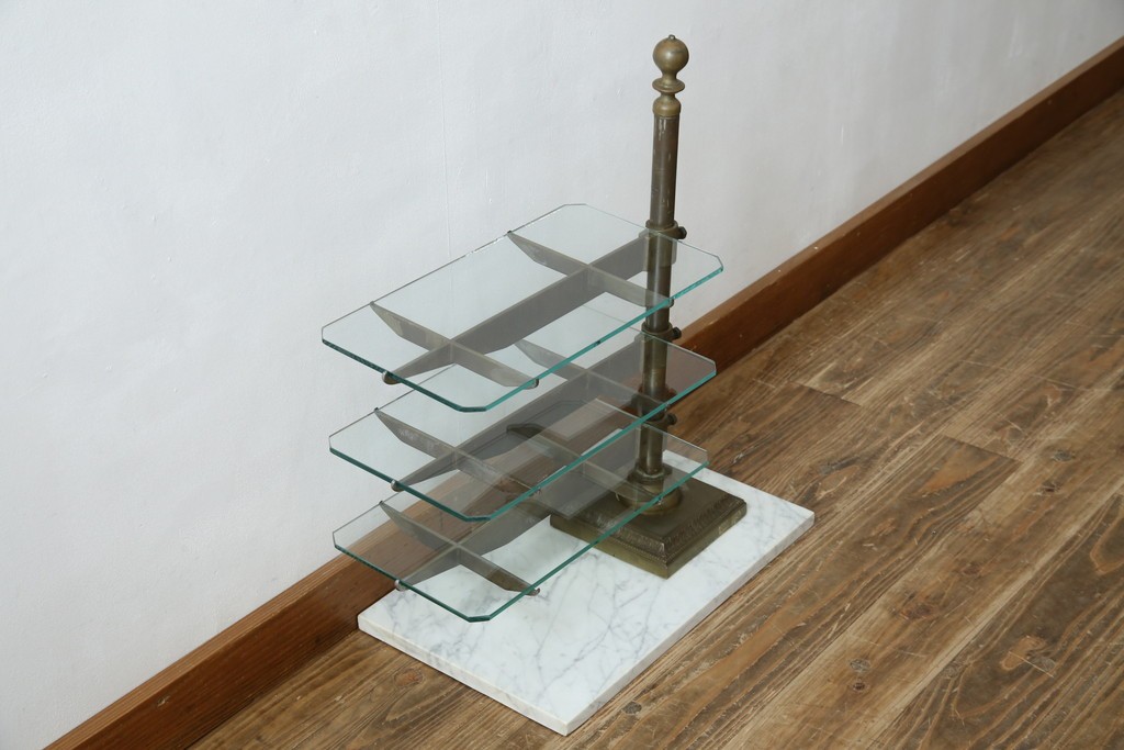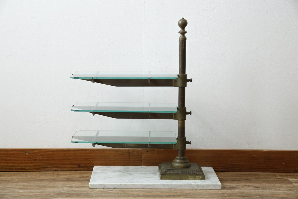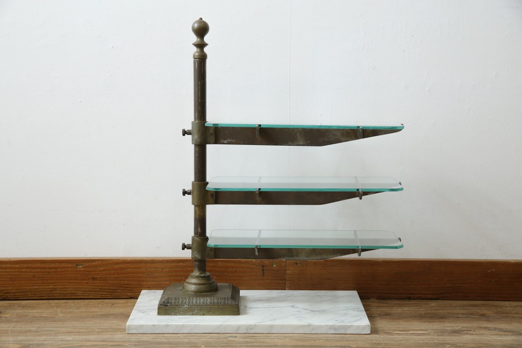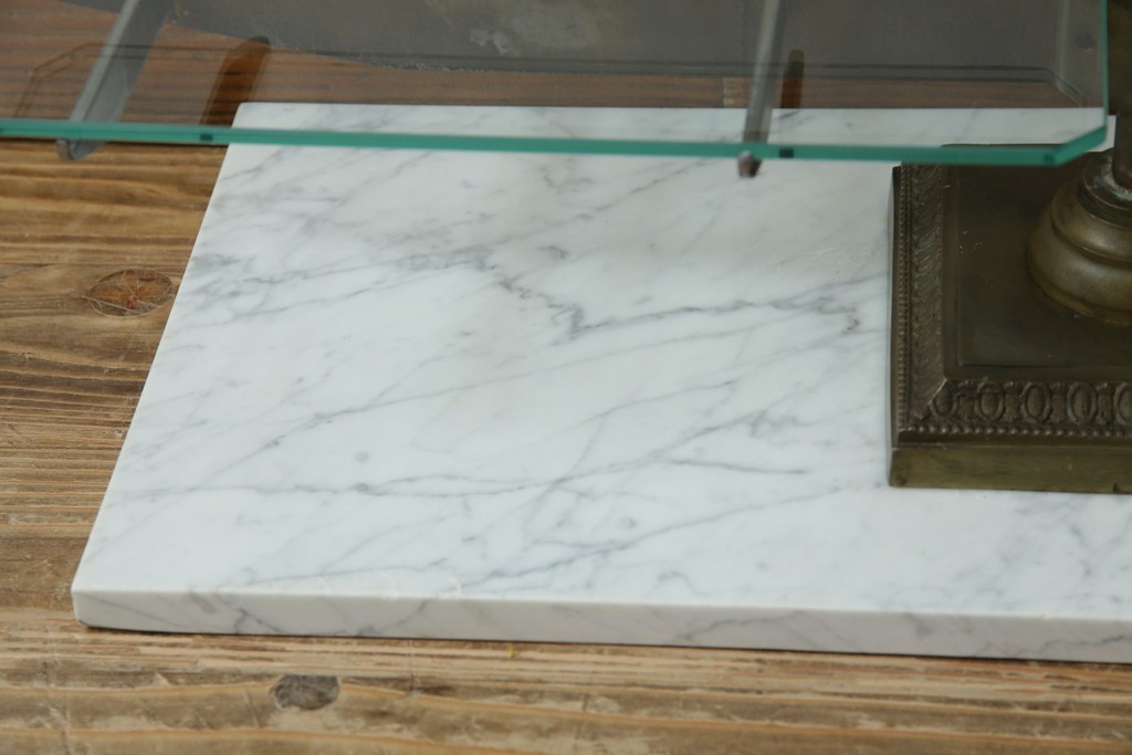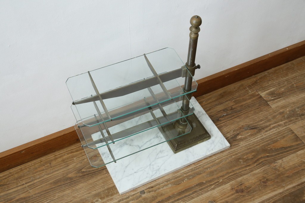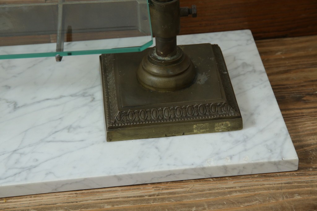 フランスビンテージ 大理石ベース 真鍮(しんちゅう)フレームの卓上フレンチディスプレイスタンド (R-076411)