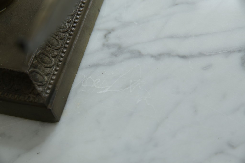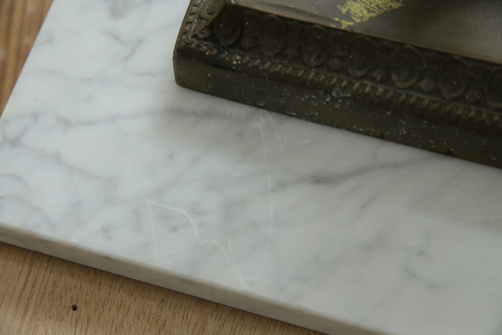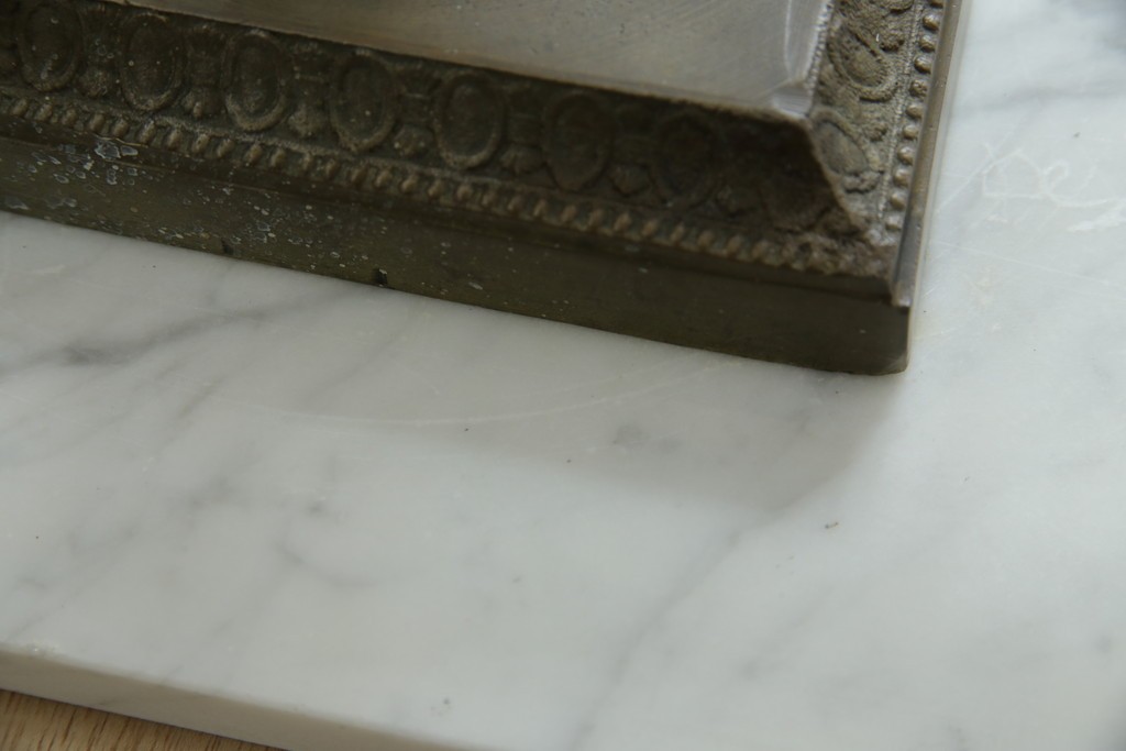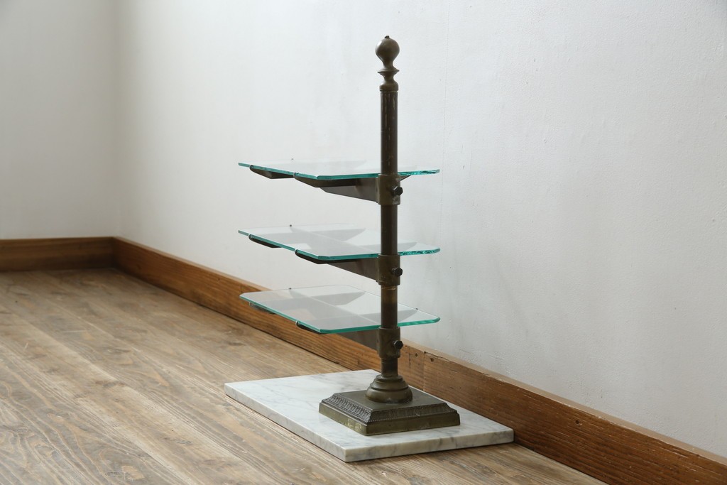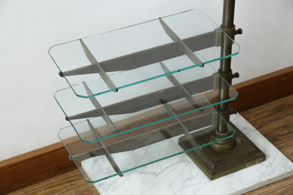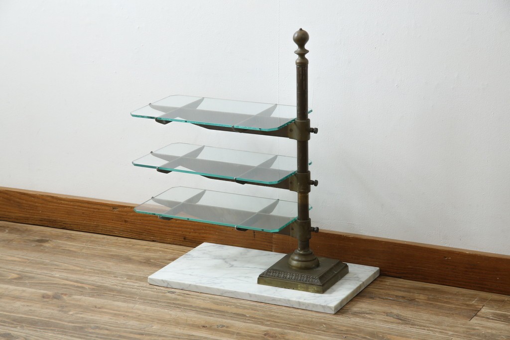 フランスビンテージ 大理石ベース 真鍮(しんちゅう)フレームの卓上フレンチディスプレイスタンド (R-076411)