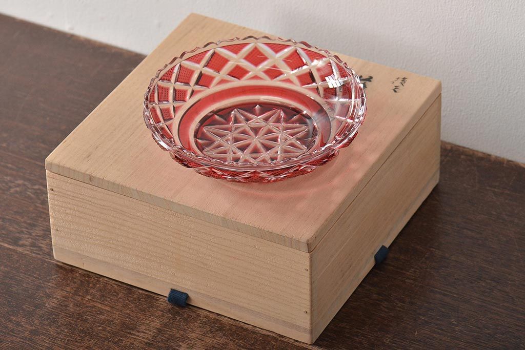 ラフジュ工房> 骨董品の買取実績> ガラス工芸の買取実績 > 【骨董買取】尚古集成館監修 薩摩ガラス工芸作 色被せガラス 切子段付中皿を買取りました