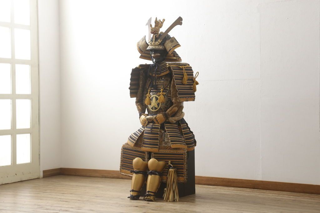 【古美術買取】等身鎧(兜、甲冑、鎧立て、箱付き、五月人形、子供の日、端午の節句、武者人形、家紋、丸に沢瀉)(骨董)を買取りました。