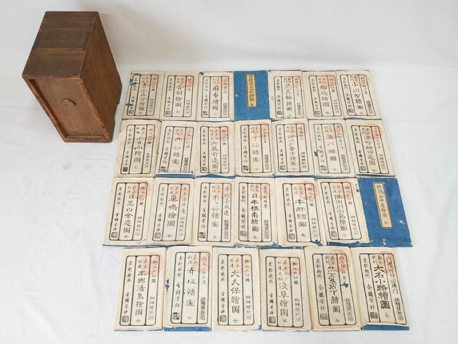 古美術品の買取実績> 古書の買取実績 > 【古美術買取】嘉永 木版画 尾張屋清七版 青山 麻布 目黒 巣鴨 日本橋 赤坂 浅草など 江戸切絵図27冊セット(古地図、和本、古書、アンティーク)を買取りました。