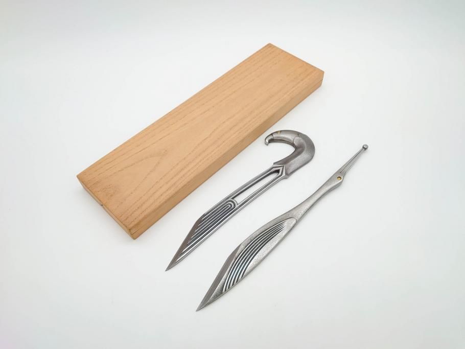 【古美術買取】藤原良明(Fujiwara Yoshiaki)(加藤真平(Kato Shinpei))作 切り出し 鶴 鷲 武蔵國水心子 昭和壬戌年八月日 昭和辛酉年十月日 小刀(金象嵌、短刀、ナイフ、刃物)(アンティーク)を買取りました。