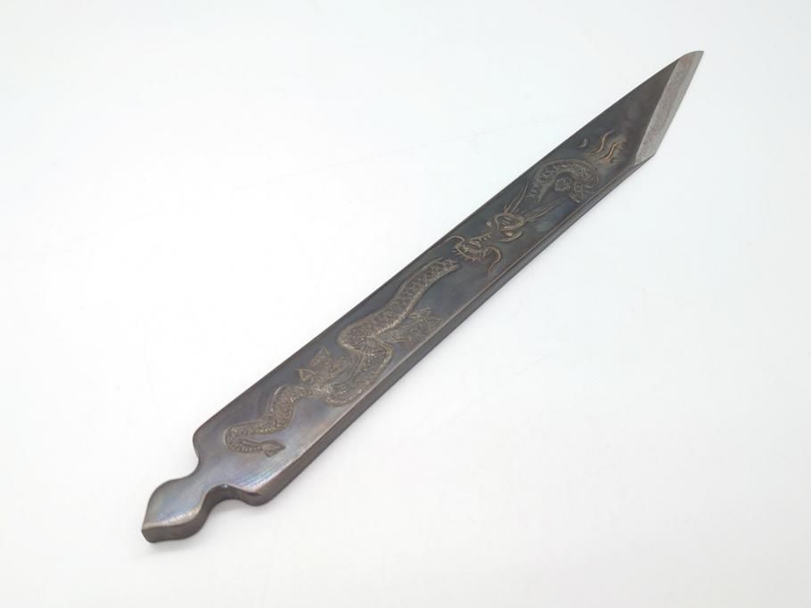 【古美術買取】藤原良明(Fujiwara Yoshiaki)(加藤真平(Kato Shinpei))作 切り出し 龍の図 武蔵國水心子 昭和丙寅年八月日 小刀(短刀、ナイフ、刃物)(アンティーク)を買取りました。