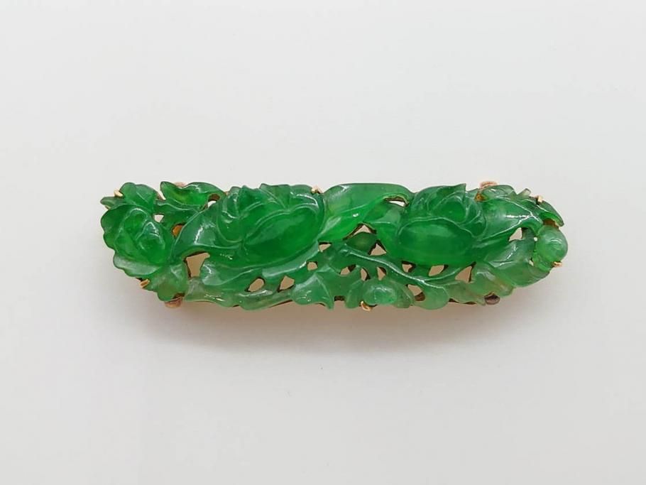 ラフジュ工房> 骨董品の買取実績> 帯留の買取実績 > 【骨董買取】翡翠 フラワーデザイン K18金 帯留め(ヒスイ、帯締め、着物道具、和装小物、アクセサリー、アンティーク)を買取りました。