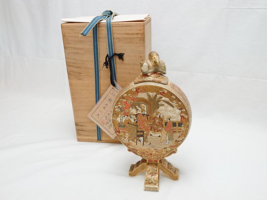 ラフジュ工房> 骨董品の買取実績> 香炉の買取実績 > 【骨董買取】明治時代 薩摩錦手 花と人物図鼠蓋太鼓形香炉(置物、仏具)を買取りました。