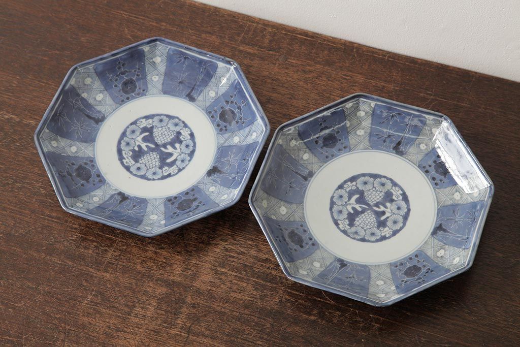 【骨董買取】江戸期 古伊万里 松竹梅文 染付八角皿(アンティーク 伊万里(有田焼))を買取りました。