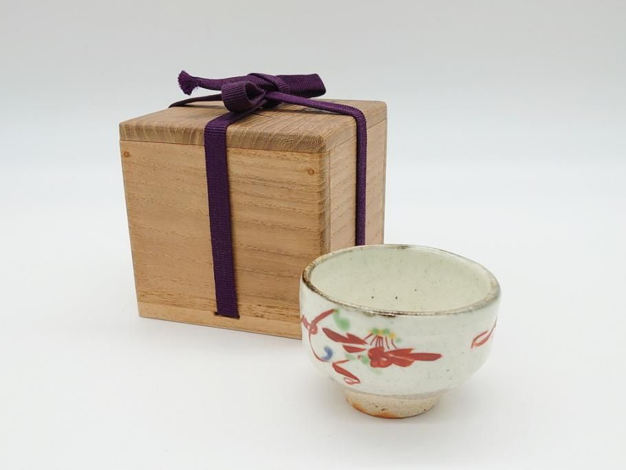 ラフジュ工房> 骨董品の買取実績> 磁器の買取実績 > 【骨董買取】人間国宝 藤本能道(Fujimoto Yoshimichi) 赤絵 ぐい呑み(酒器、花文、色絵磁器)を買取りました。