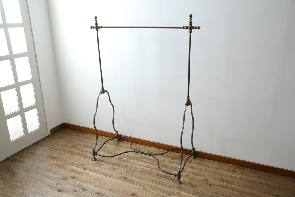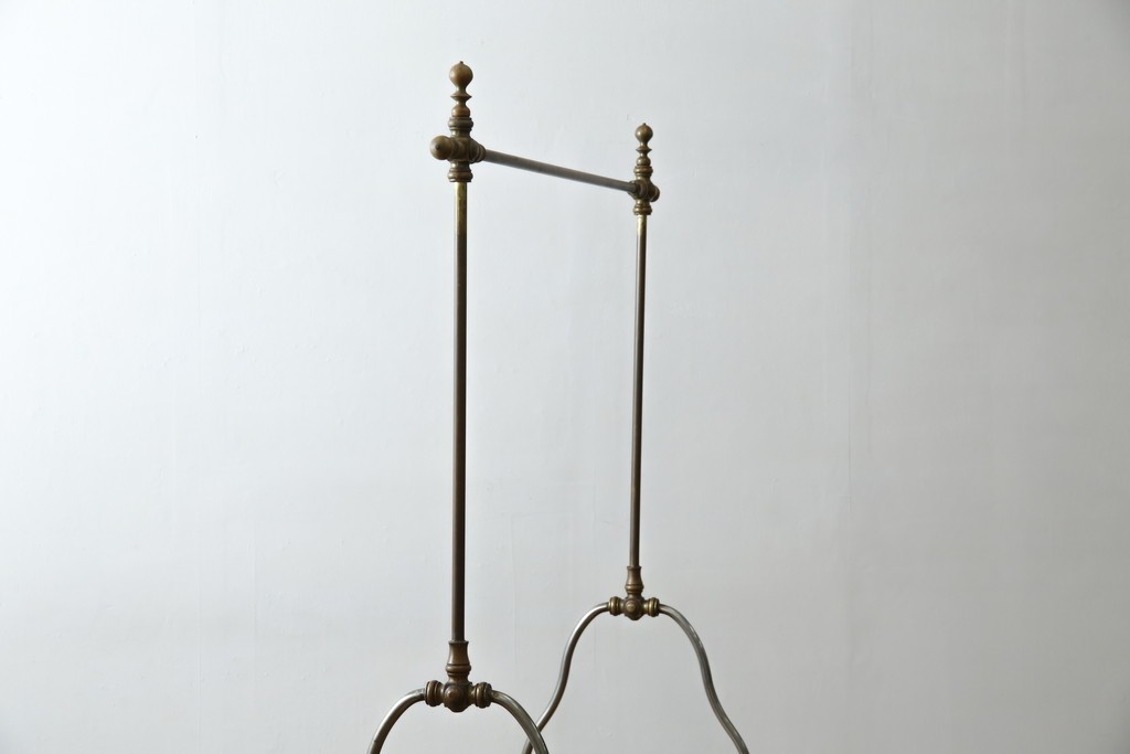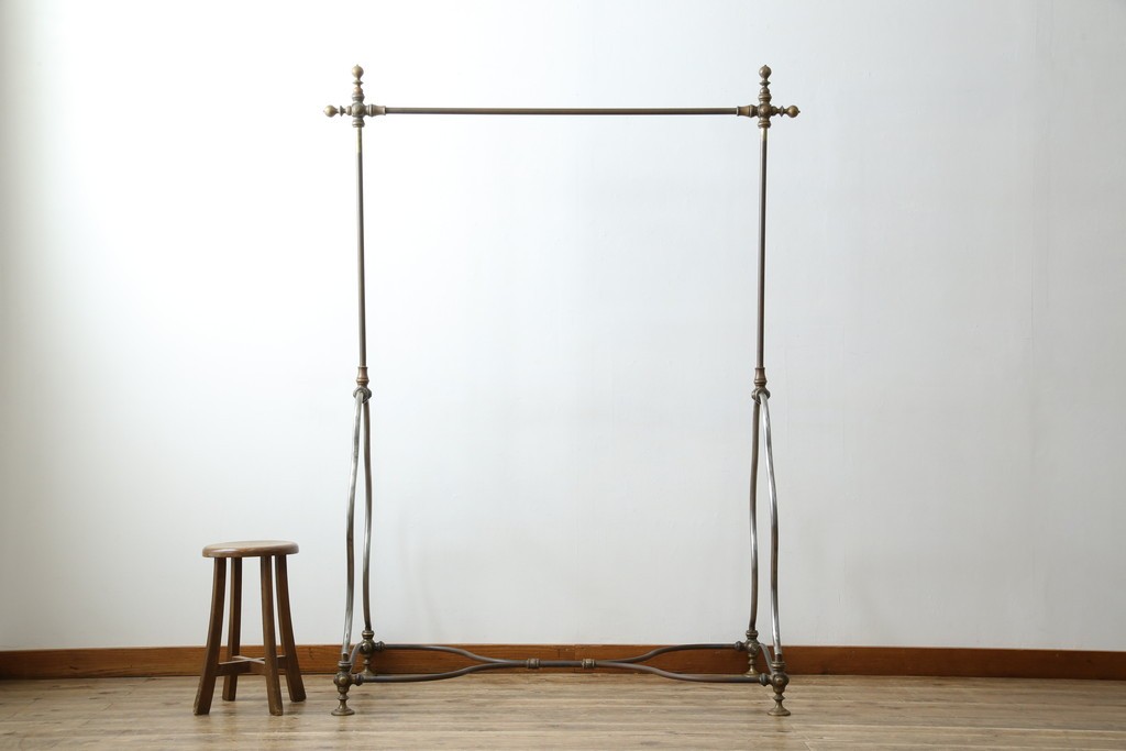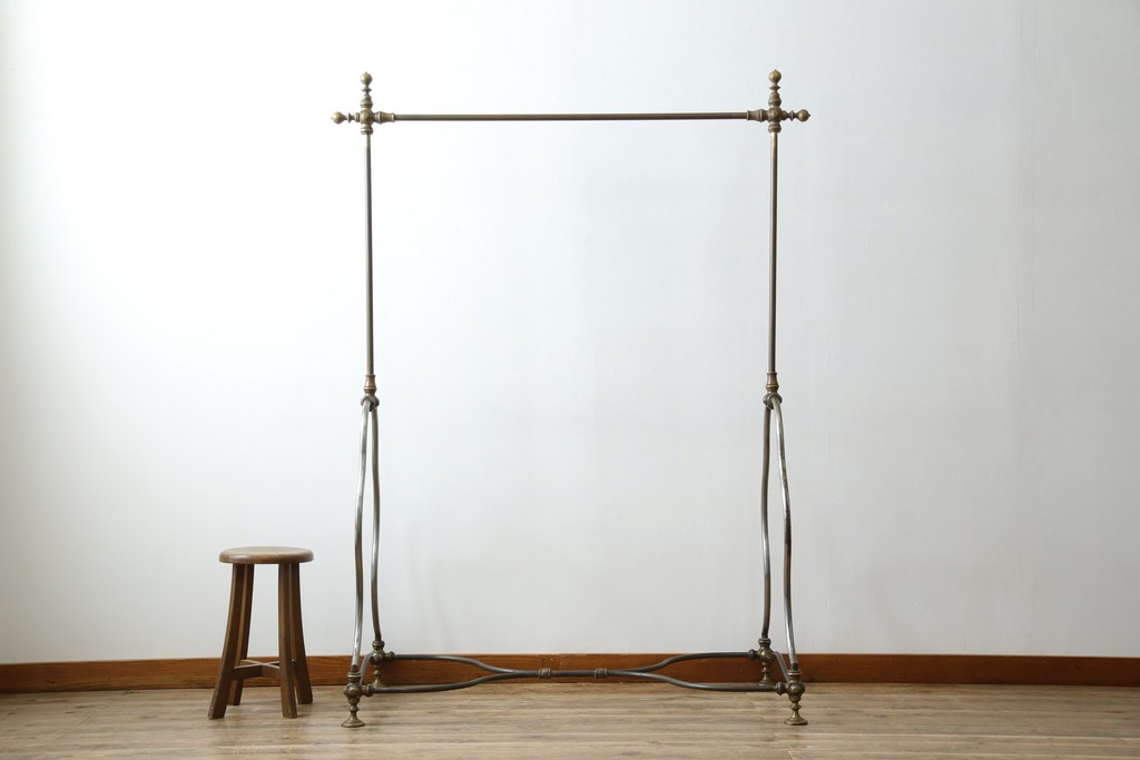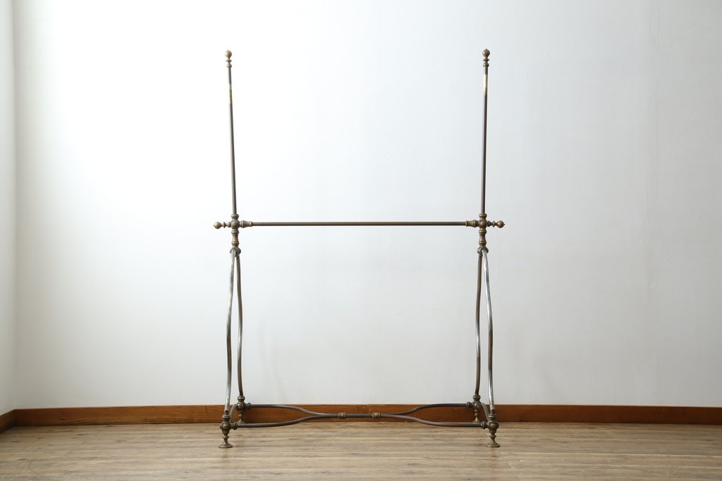 ハンガーラック・衣桁> ハンガーラック > フランスビンテージ 緩やかなカーブを描く脚がお洒落な真鍮(しんちゅう)とアイアンのハンガーラック(ポールハンガー、店舗什器)(R-077545)