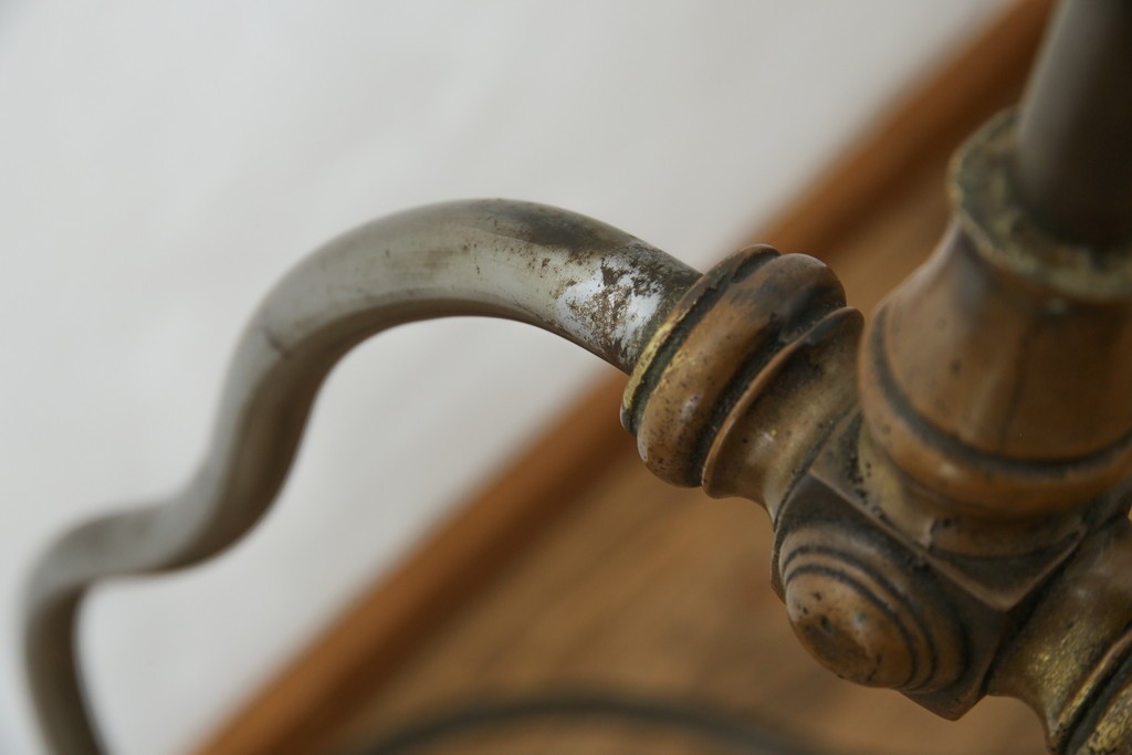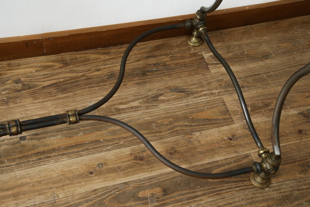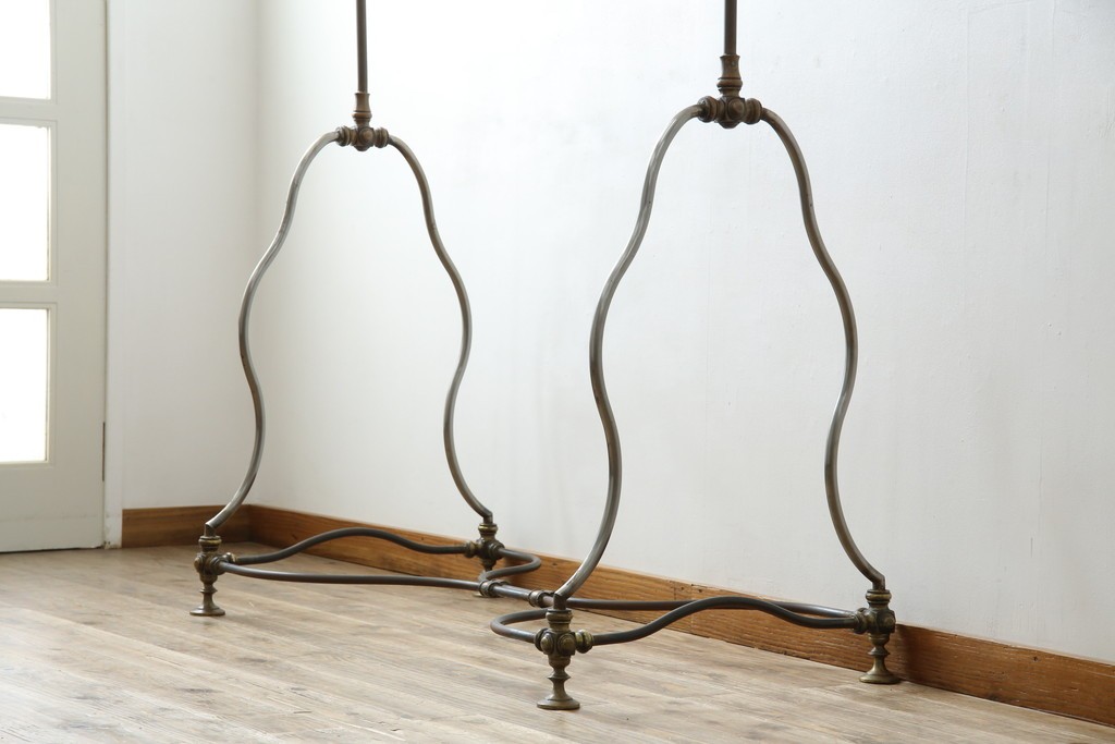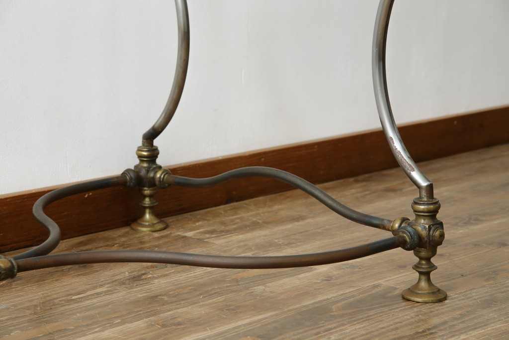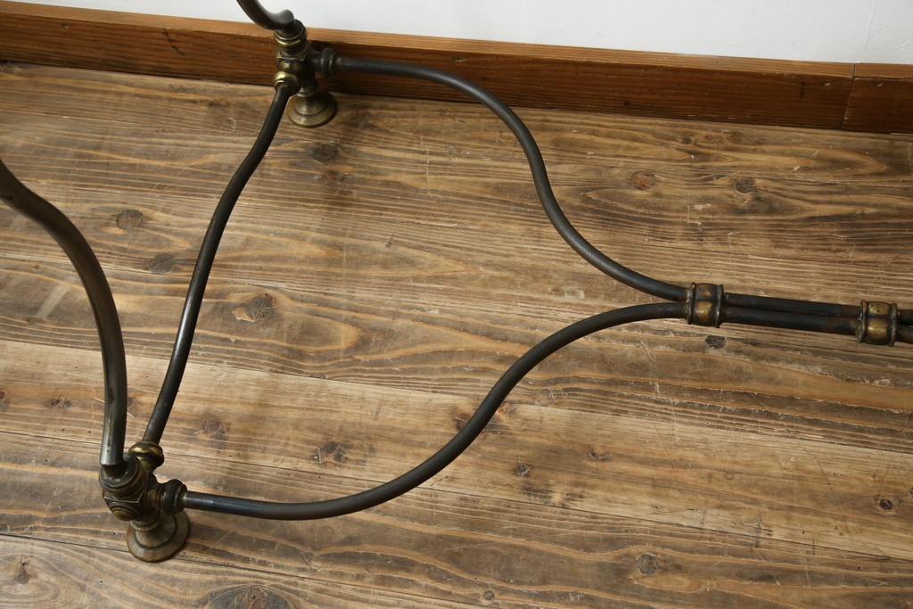 ハンガーラック・衣桁> ハンガーラック > フランスビンテージ 緩やかなカーブを描く脚がお洒落な真鍮(しんちゅう)とアイアンのハンガーラック(ポールハンガー、店舗什器)(R-077545)