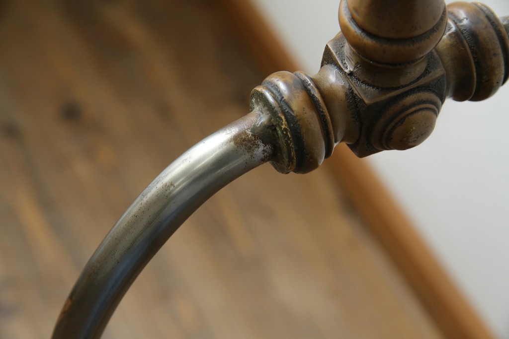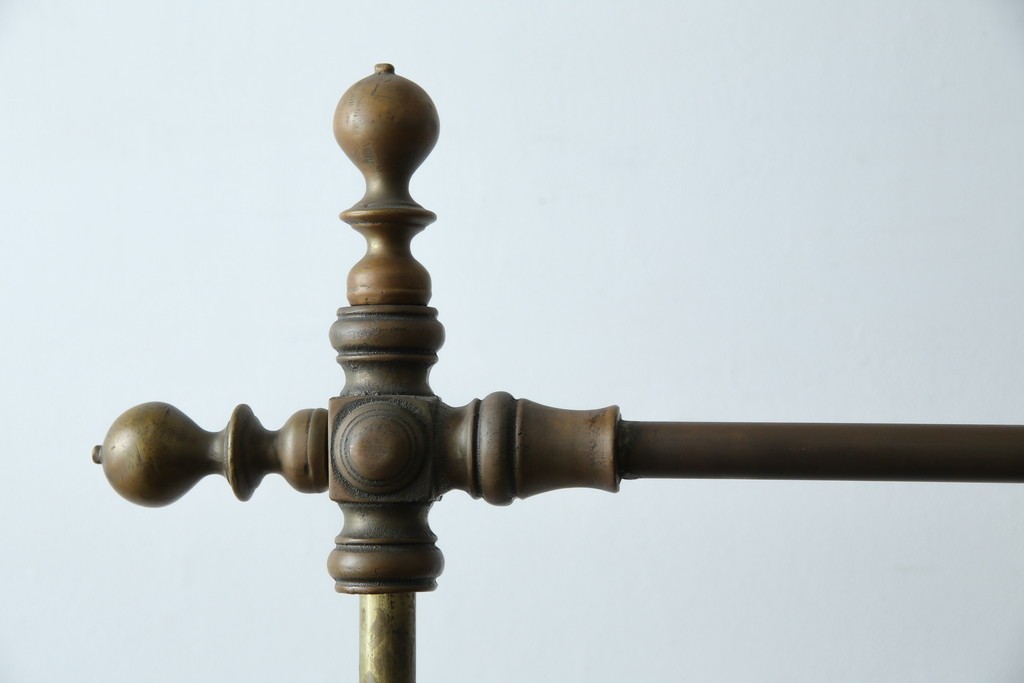 ハンガーラック・衣桁 > フランスビンテージ 緩やかなカーブを描く脚がお洒落な真鍮(しんちゅう)とアイアンのハンガーラック(ポールハンガー、店舗什器)(R-077545)