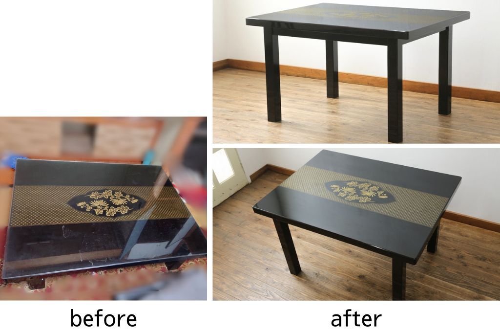 座卓をテーブルにリメイク!指定サイズで角脚を新規製作し取り付け。