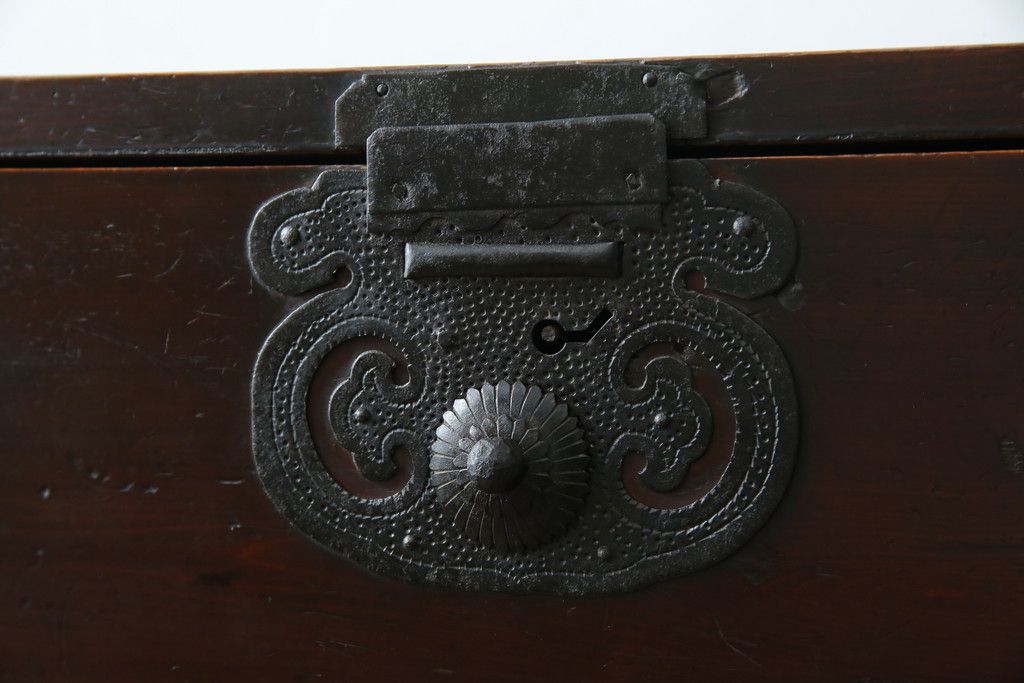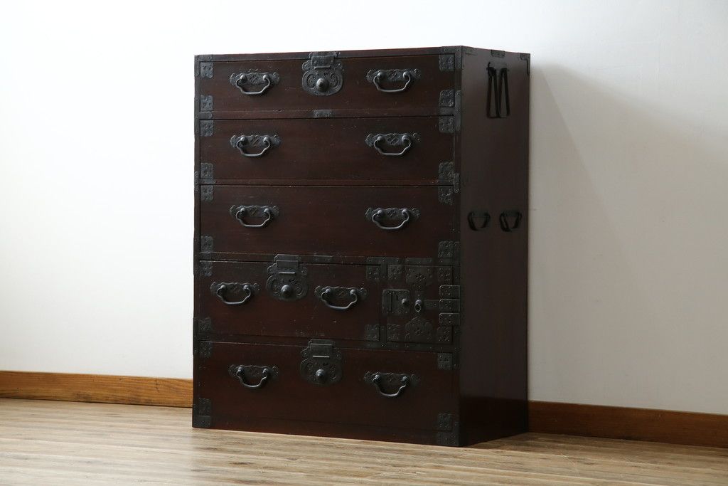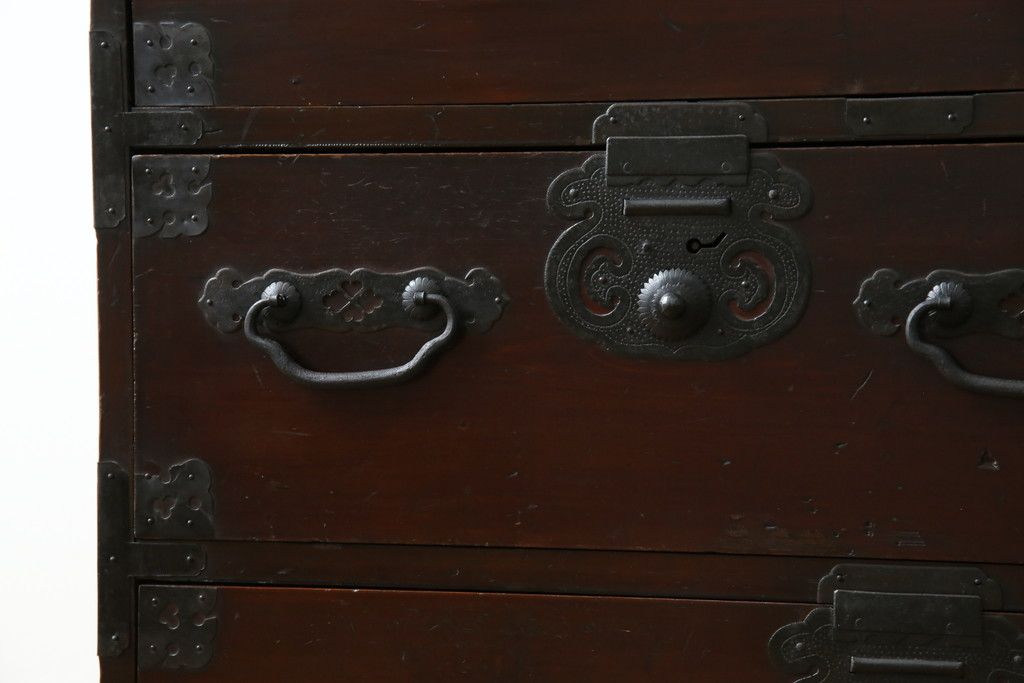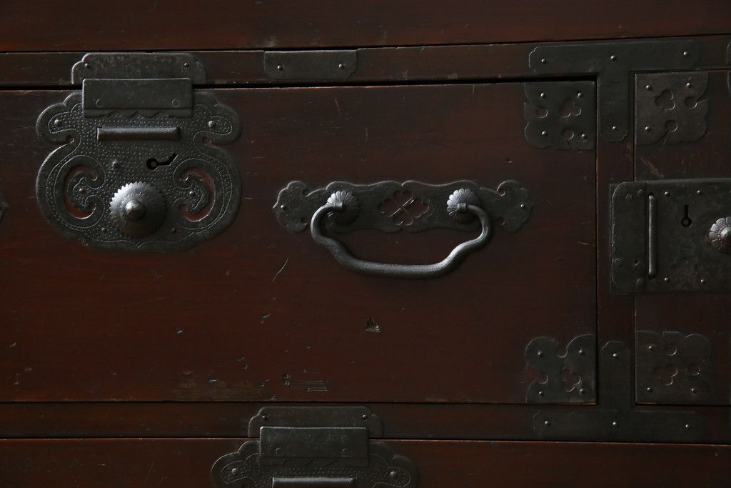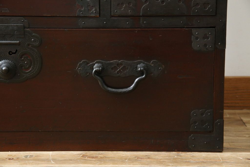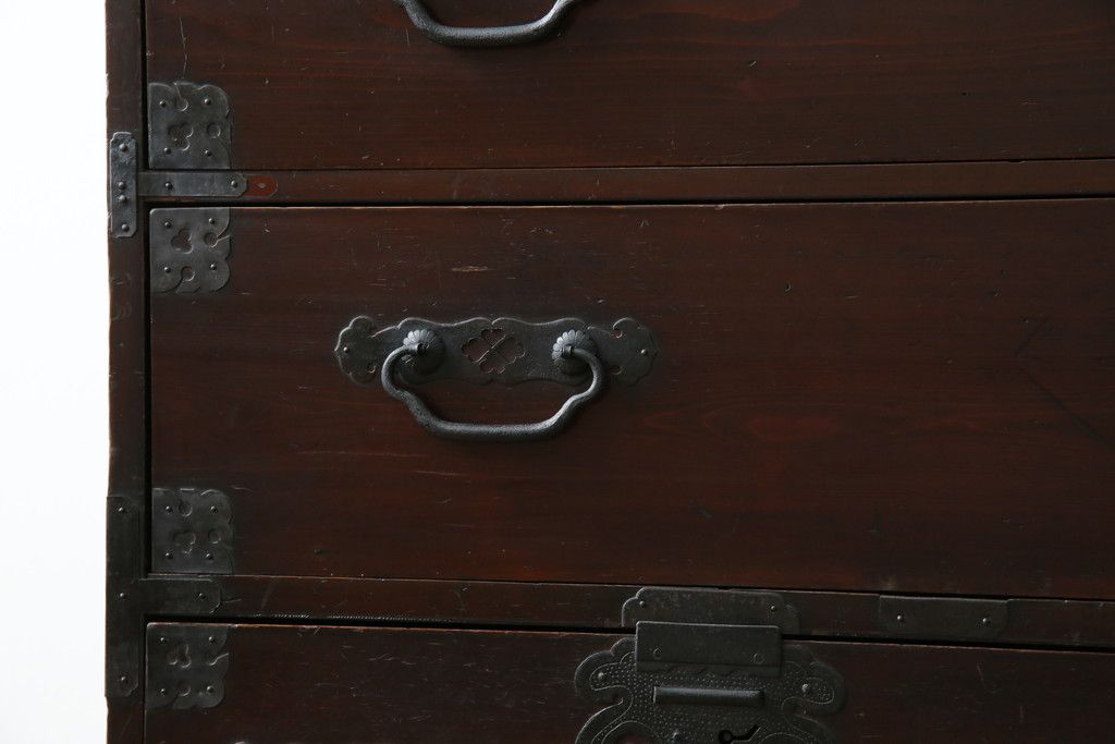 和製アンティーク 明治大正期 縁起物の巾着金具が魅力的な松本衣装箪笥(時代箪笥、和たんす、収納タンス、チェスト、引き出し)(R-077849)