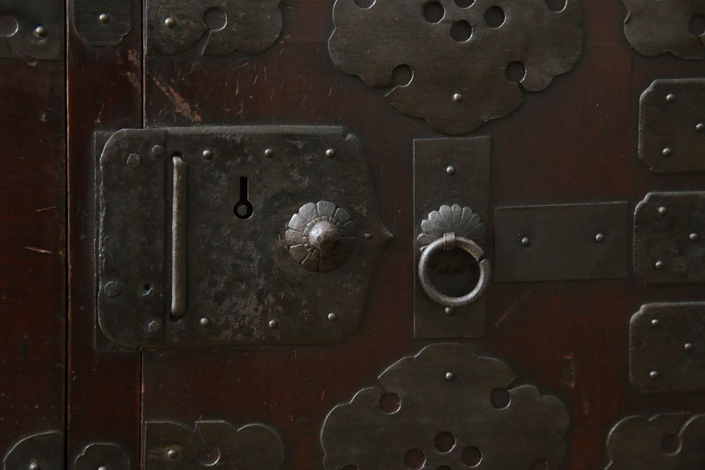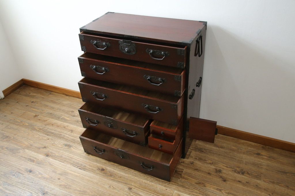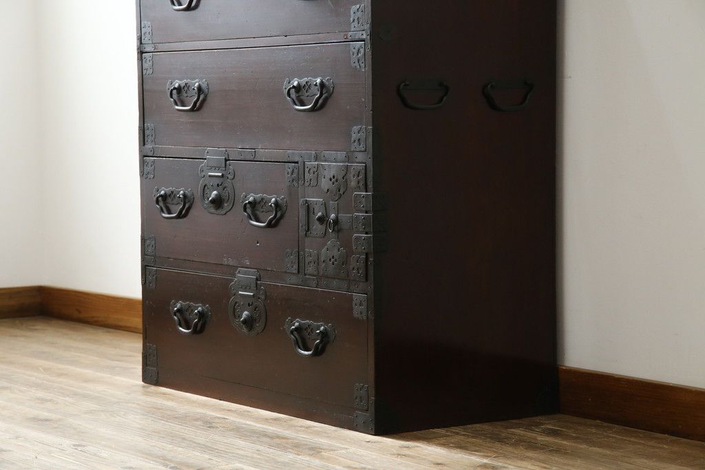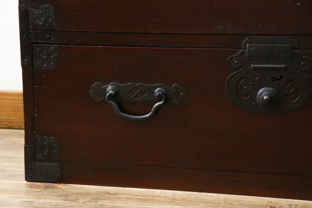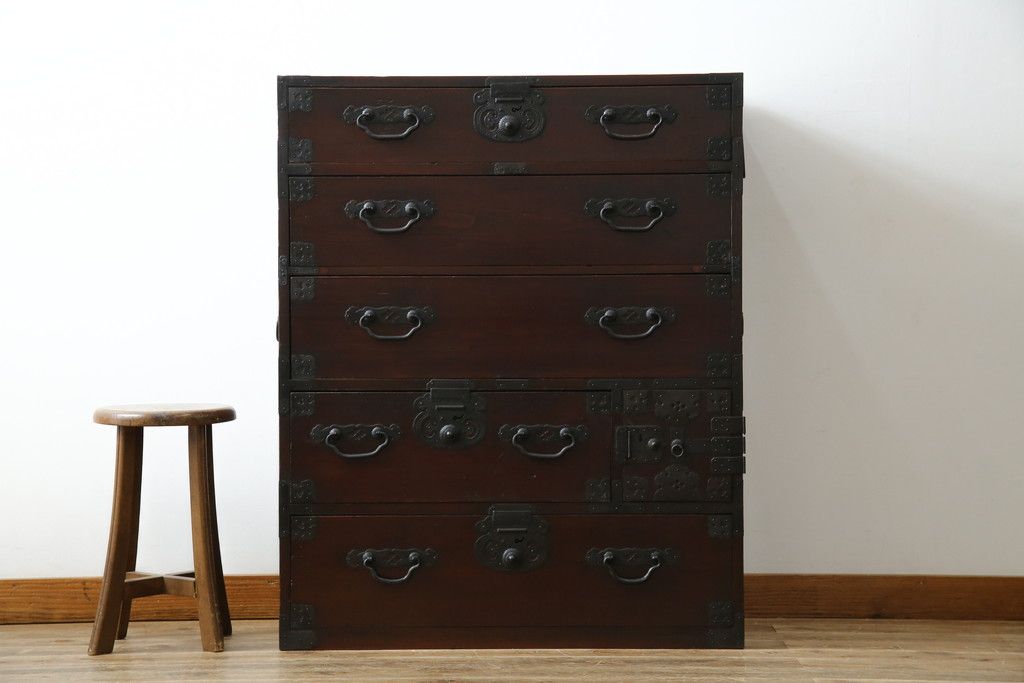和箪笥> 衣装箪笥 > 和製アンティーク 明治大正期 縁起物の巾着金具が魅力的な松本衣装箪笥(時代箪笥、和たんす、収納タンス、チェスト、引き出し)(R-077849)