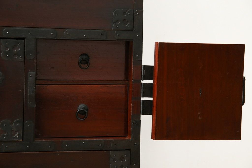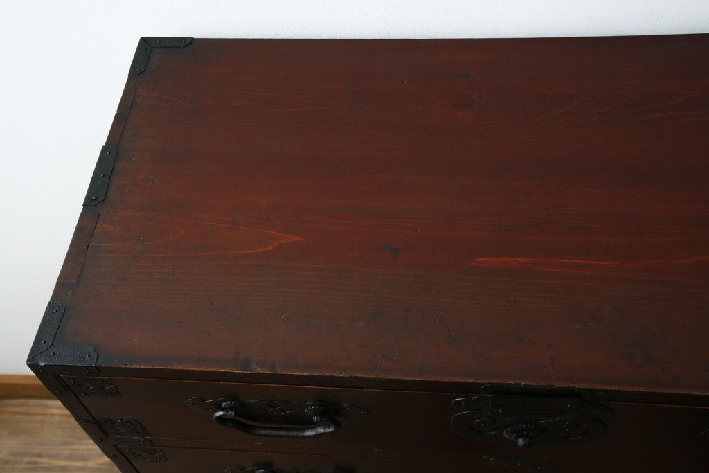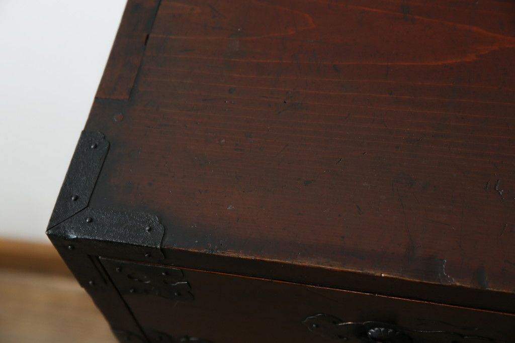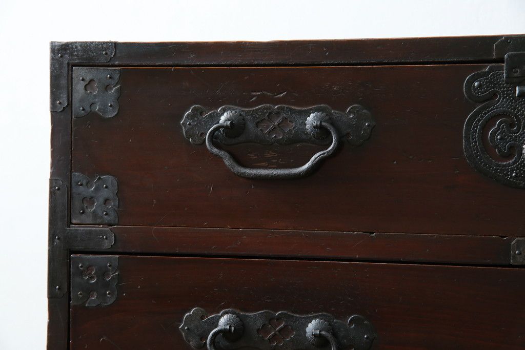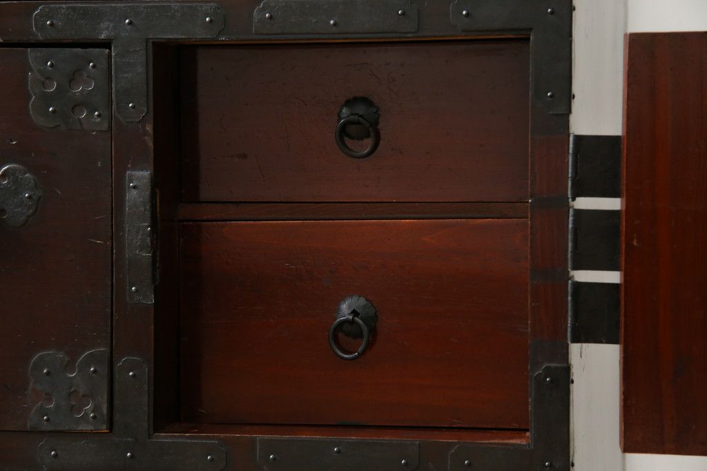 和箪笥> 衣装箪笥 > 和製アンティーク 明治大正期 縁起物の巾着金具が魅力的な松本衣装箪笥(時代箪笥、和たんす、収納タンス、チェスト、引き出し)(R-077849)