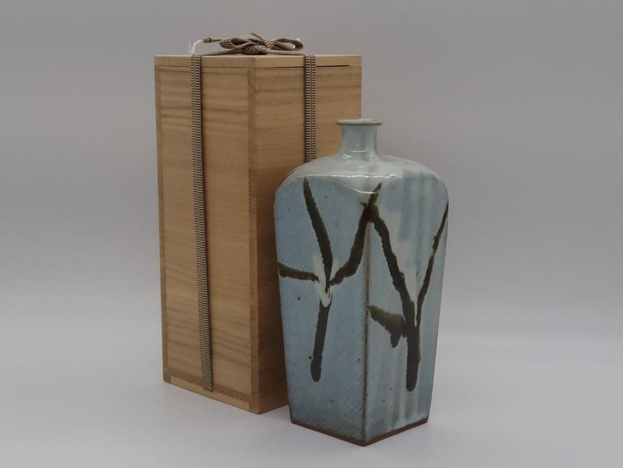 ラフジュ工房> 骨董品の買取実績> 島岡達三の買取実績 > 【骨董買取】人間国宝 島岡達三(Shimaoka Tatsuzo) 益子焼 白釉縄文象嵌 流文方壺(白釉、壷、民芸陶器)を買取りました。