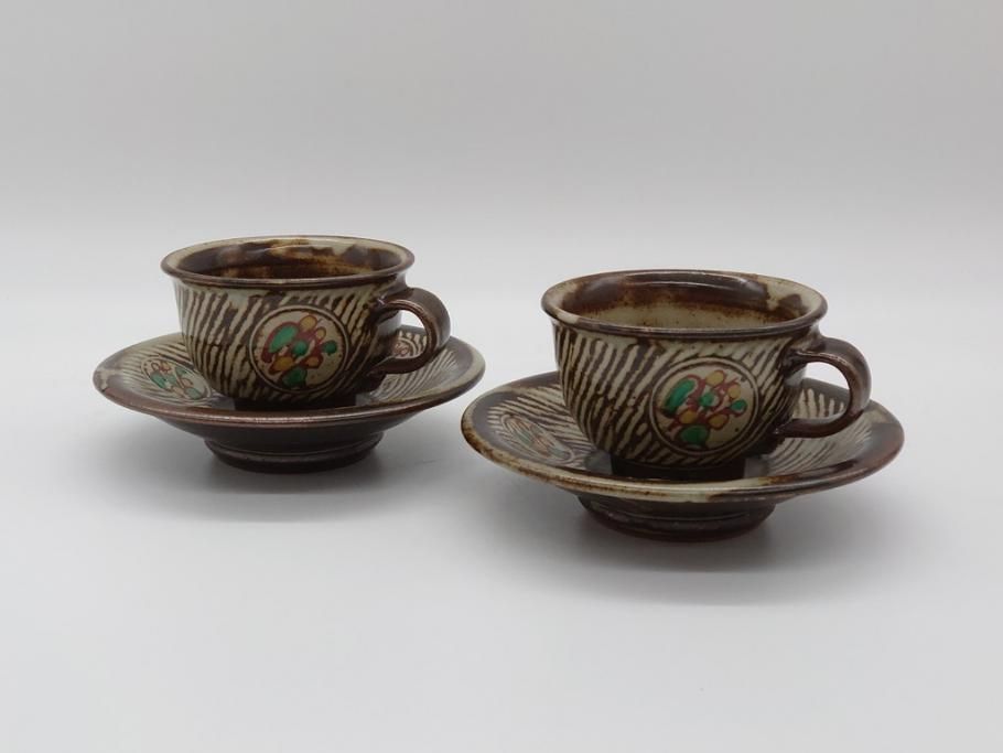 ラフジュ工房> 骨董品の買取実績> 島岡達三の買取実績 > 【骨董買取】人間国宝 島岡達三(Shimaoka Tatsuzo) 益子焼 象嵌赤絵 草花文カップ&ソーサー(コーヒーカップ、民芸陶器)を買取りました。