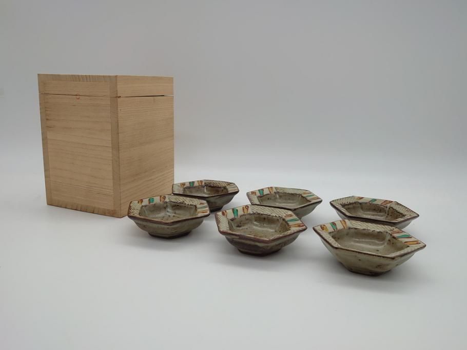 ラフジュ工房> 骨董品の買取実績> 島岡達三の買取実績 > 【骨董買取】人間国宝 島岡達三(Shimaoka Tatsuzo) 益子焼 象嵌赤絵縞文六角組皿 六角組皿(小鉢、和食器、民芸陶器、長皿・変形皿)を買取りました。