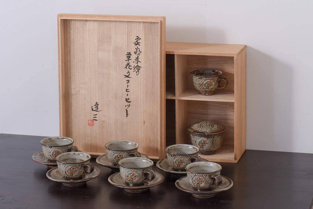 ラフジュ工房> 骨董品の買取実績> 島岡達三の買取実績 > 【骨董買取】人間国宝 島岡達三(Shimaoka Tatsuzo) 象嵌赤絵 草花文コーヒーセット(カップ&ソーサー、クリーマー、シュガーポット)を買取りました。
