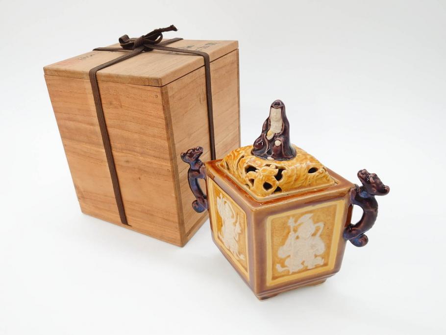 【骨董買取】九谷焼 徳田八十吉(Tokuda Yasokichi) 瑞稲釉 四天王図 龍双耳 観音摘 香炉(菱形)を買取りました。