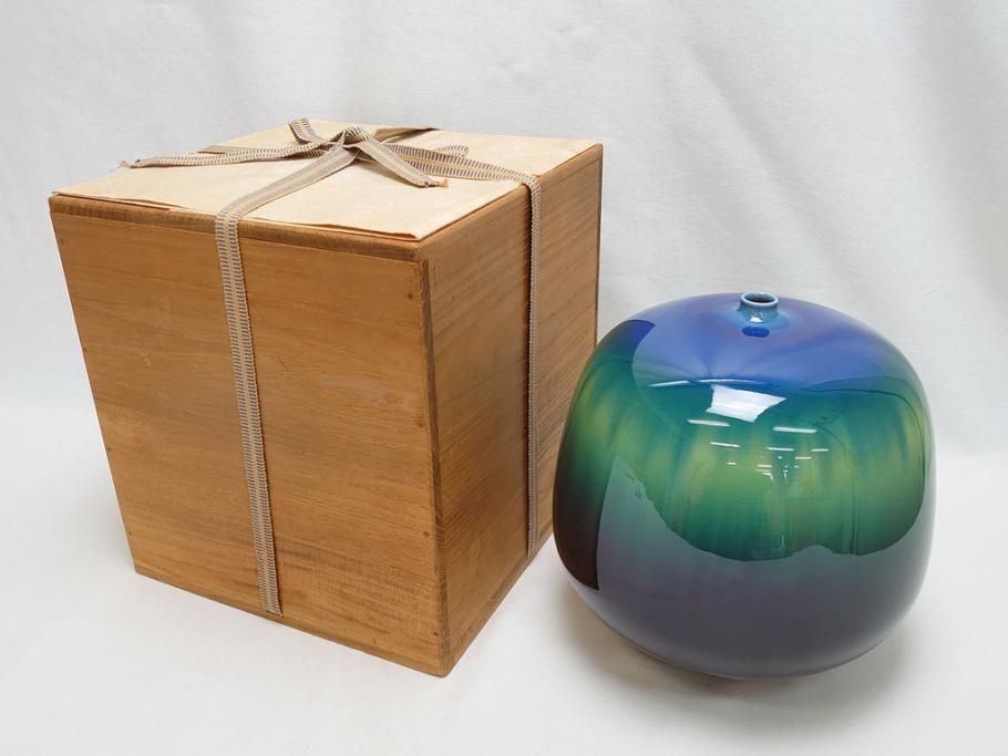 ラフジュ工房> 骨董品の買取実績> 徳田八十吉の買取実績 > 【骨董買取】柳雨軒 徳田正彦(Tokuda Masahiko/三代徳田八十吉(Yasokichi)) 九谷焼 碧明釉 壺(碧明燿彩、花瓶、作家物)を買取りました。