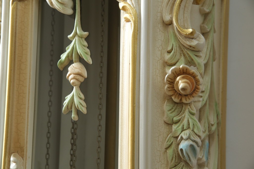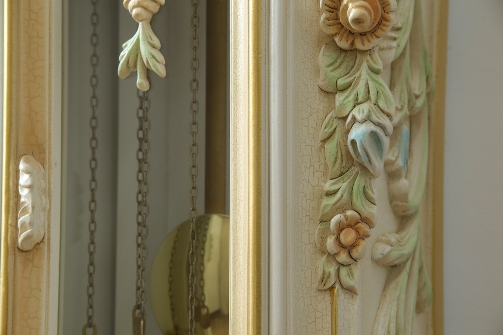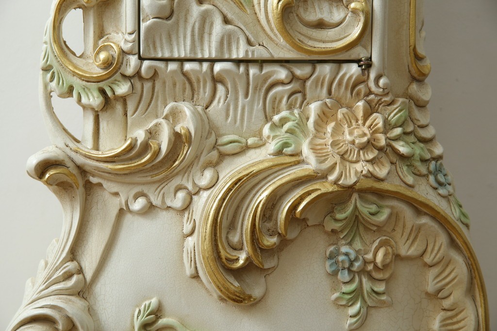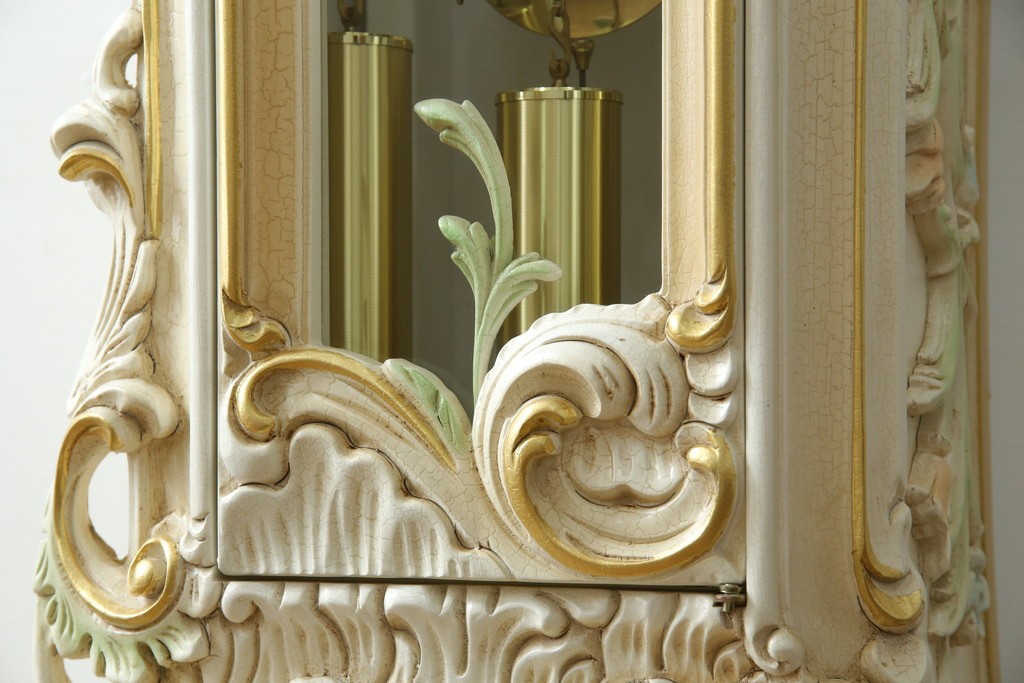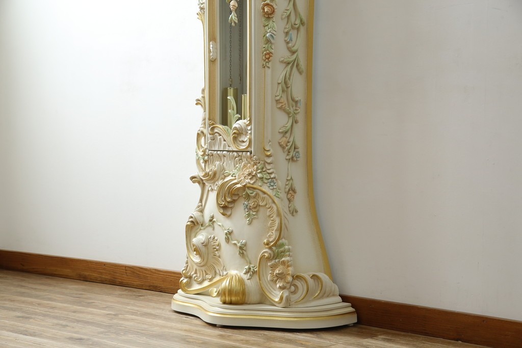 中古 美品!! イタリア製 ブランド家具 分銅式 豪華な装飾が魅力のロココ調ホールクロック 定価約240万円相当 (R-078088)