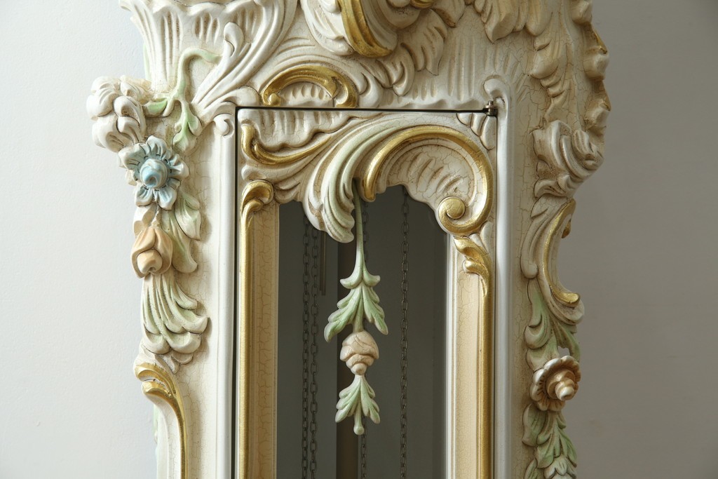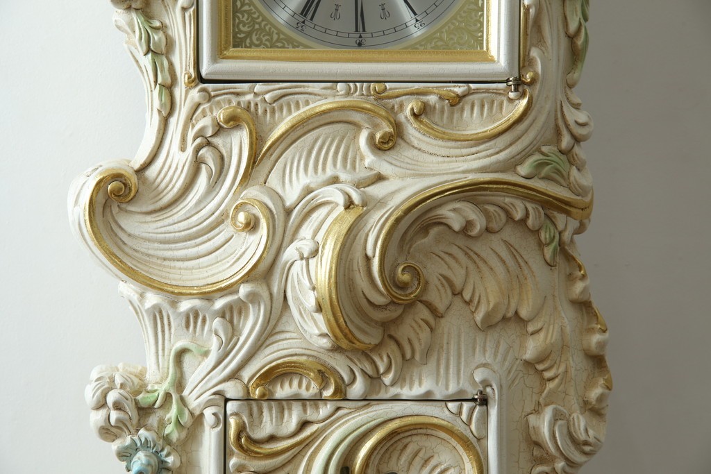 時計> ホールクロック > 中古 美品!! イタリア製 ブランド家具 分銅式 豪華な装飾が魅力のロココ調ホールクロック 定価約240万円相当 (R-078088)