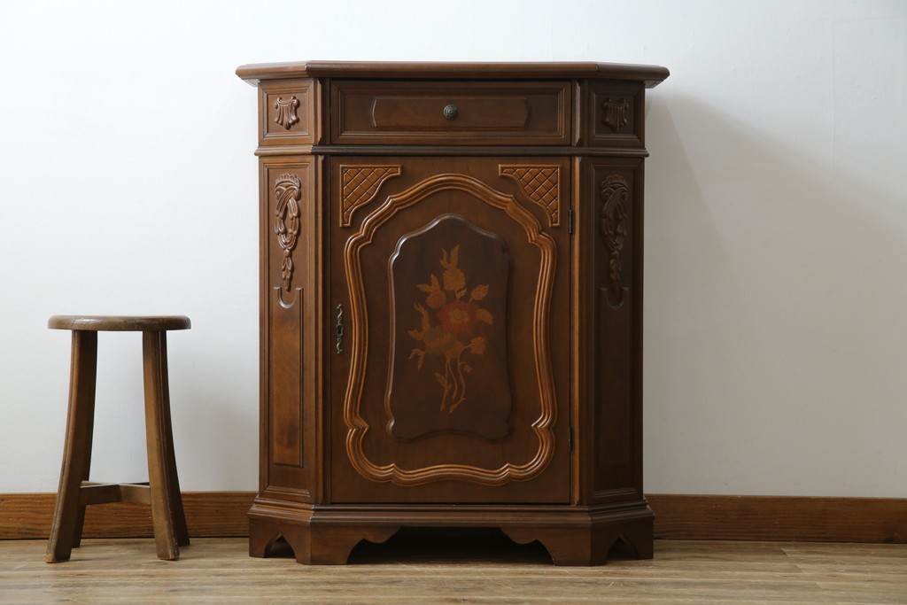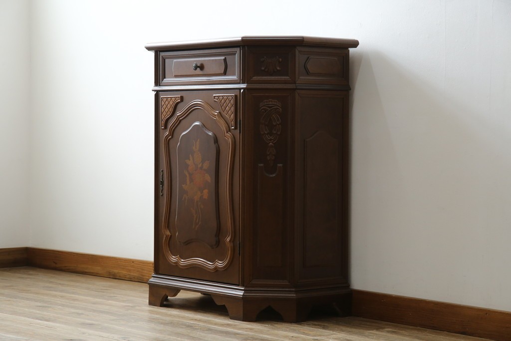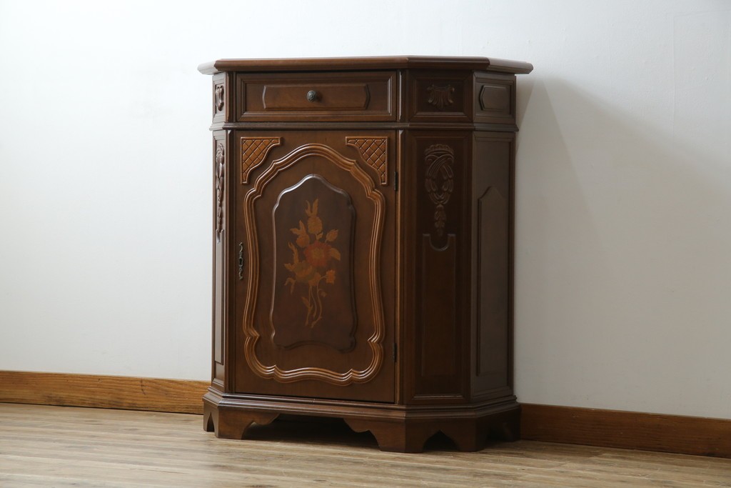花台・飾り台 > 中古 イタリアンデザイン クラシカルな雰囲気漂うサイドキャビネット(サイドボード、収納棚、戸棚、飾り台、花台、電話台)(R-078124)
