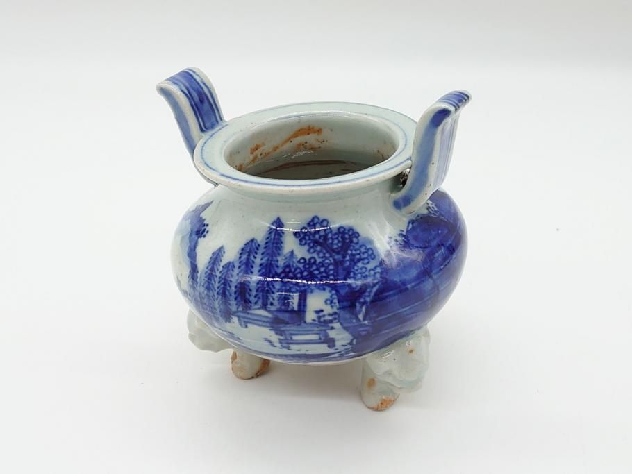 ラフジュ工房> 骨董品の買取実績> 香炉の買取実績 > 【骨董買取】江戸期 染付 山水図 双耳 三足 香炉(猫脚、獣足、三つ足)を買取りました。