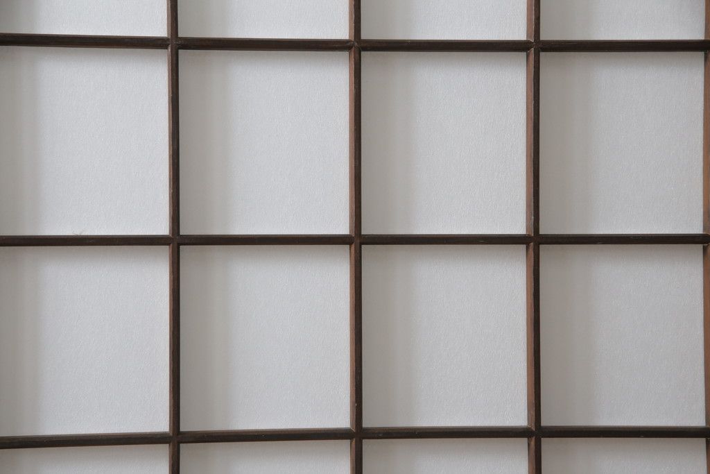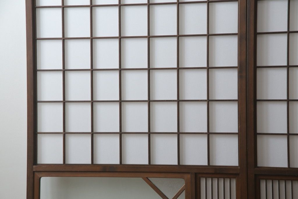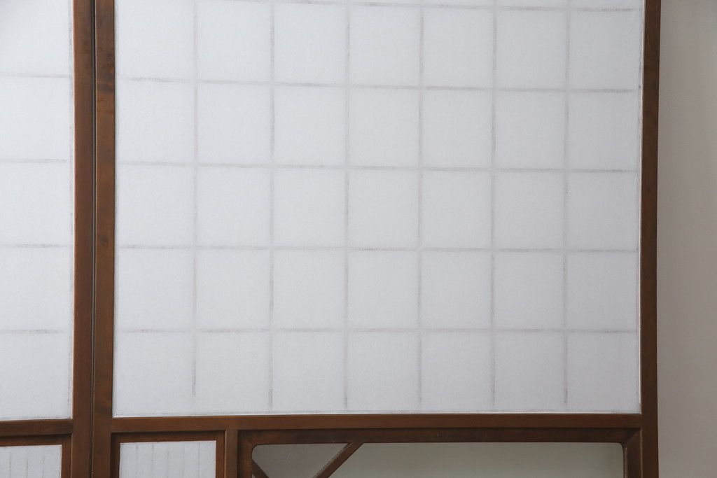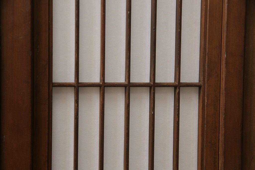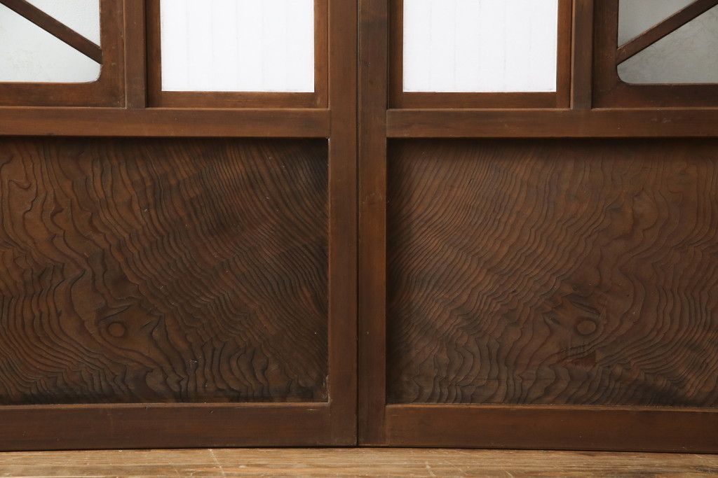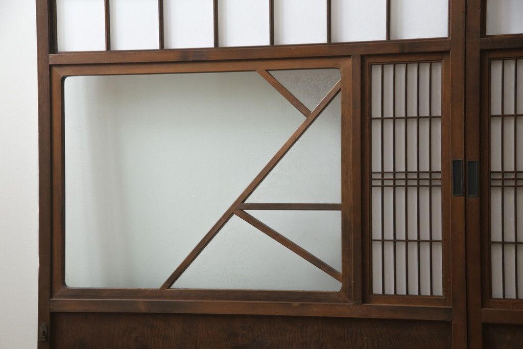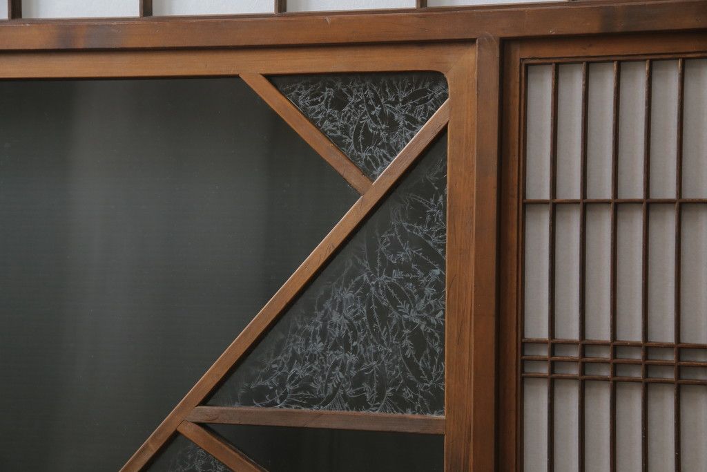 昭和初期の障子戸2枚をリペア&カスタム!金具は交換し、障子もプラスチック障子へ張り替え。全体を元の色味に合わせて着色して仕上げ。(建具、引き戸、ガラス戸)
