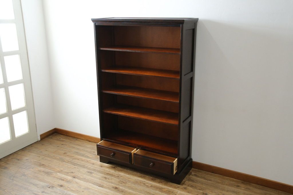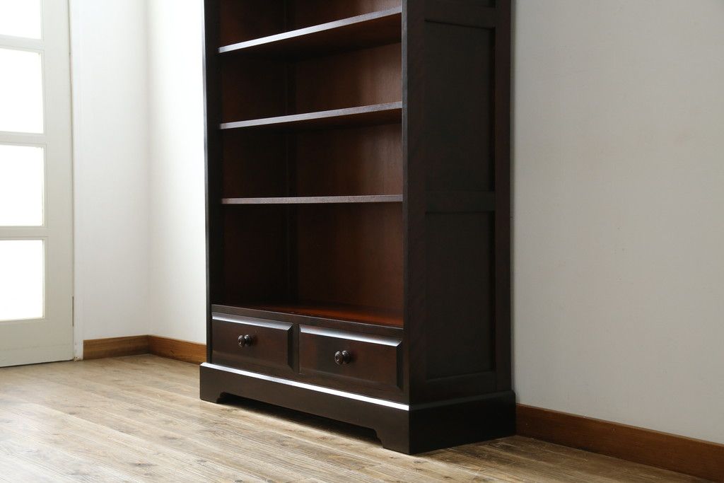 店舗什器 > 中古 北海道民芸家具 ブックケースリメイク 和洋どちらのお部屋にも馴染むオープンラック(オープンシェルフ、ブックシェルフ、本棚、書棚、収納棚、飾り棚、陳列棚、ディスプレイラック)(R-078157)
