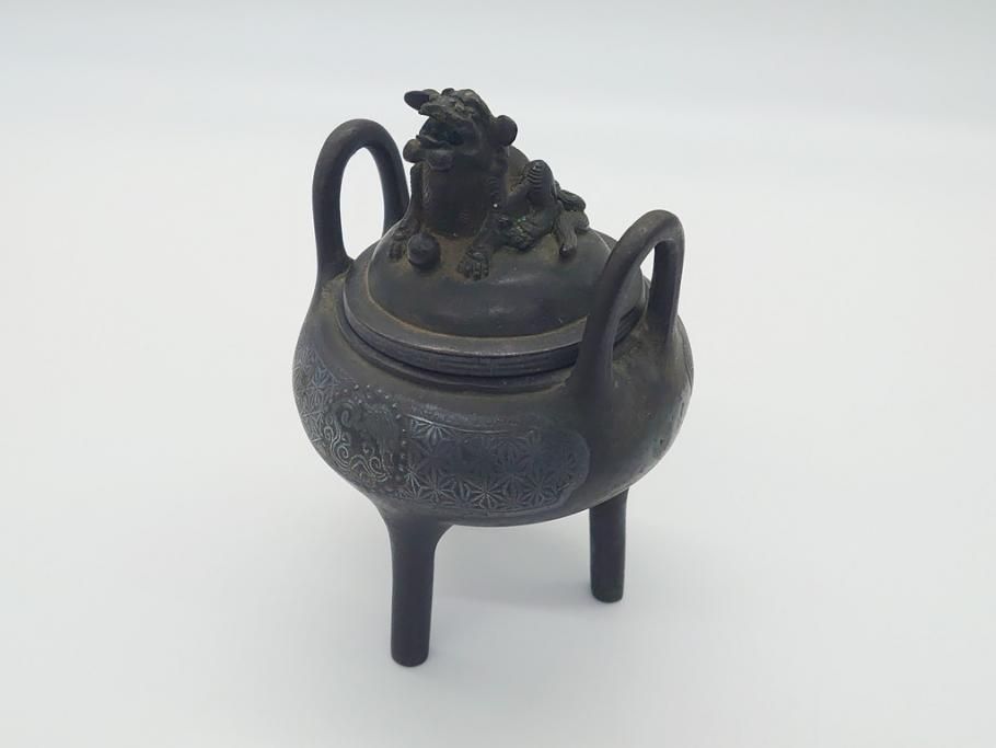 ラフジュ工房> 骨董品の買取実績> 香炉の買取実績 > 【骨董買取】古玩 古銅 獅子 銀象嵌 香炉(三つ脚、仏具)を買取りました。