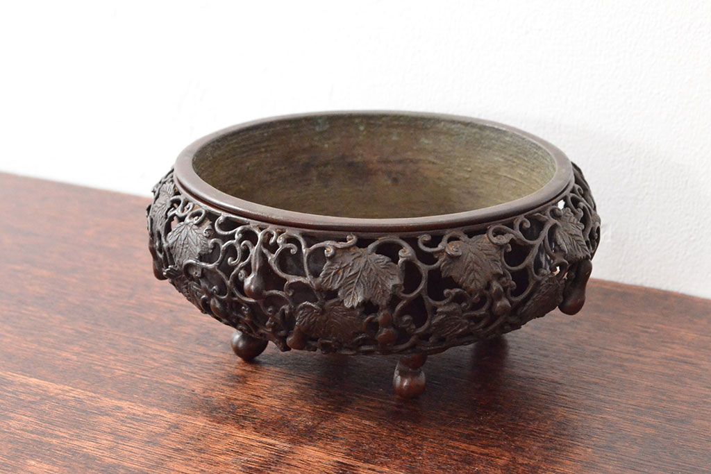 ラフジュ工房> 骨董品の買取実績> 香炉の買取実績 > 【骨董買取】在銘 古銅 瓢箪透かし唐草 香炉(高岡銅器)を買取りました。