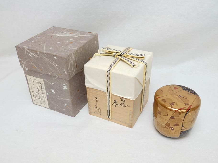 【骨董買取】山中漆器 伝統工芸士 蒔絵師 吉田華正(Yoshita Kasho/利昭) 誰ヶ袖 秋柄 蒔絵 大棗(鹿の子梨子地、誰が袖、草花、菊、螺鈿)を買取りました。
