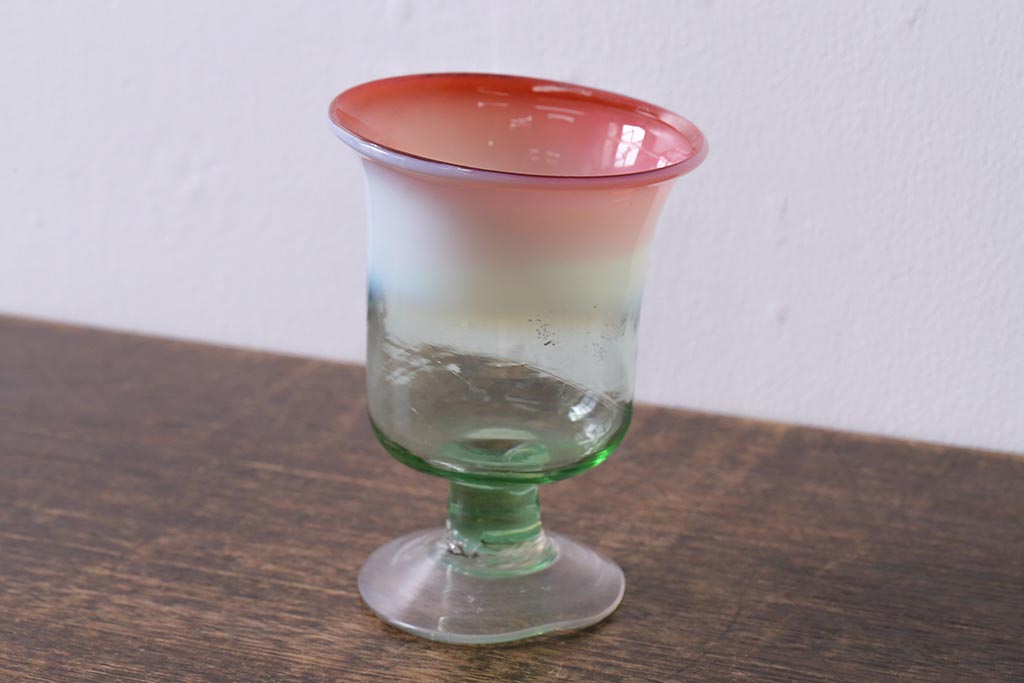 ラフジュ工房> 骨董品の買取実績> 棗の買取実績 > 【骨董買取】大正期 棗型(なつめ形) 三色氷コップ(ウランガラス、グラス、和ガラス、レトロ、アンティーク)を買取りました。