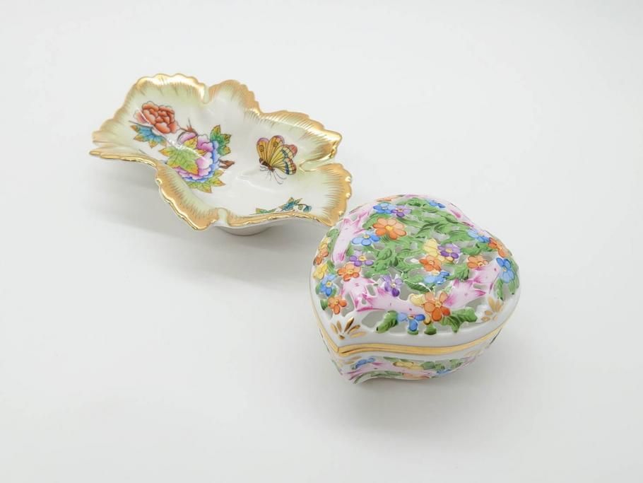 【骨董買取】ヘレンド ハンガリー HEREND HVNGARY ヴィクトリアブーケ ハート形 ボンボン入れ&トレイ(HUNGARY、トレー、小物入れ、菓子器、洋食器)を買取りました。