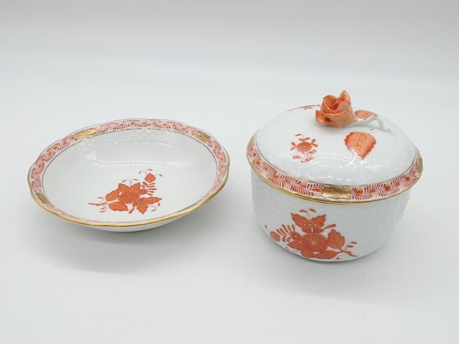 【骨董買取】ヘレンド ハンガリー HEREND HVNGARY アポニー プレート&シュガーポット(HUNGARY、テーブルウェア、ボンボン入れ、蓋物、小物入れ、皿、バラ、薔薇、西洋陶磁器)を買取ました。