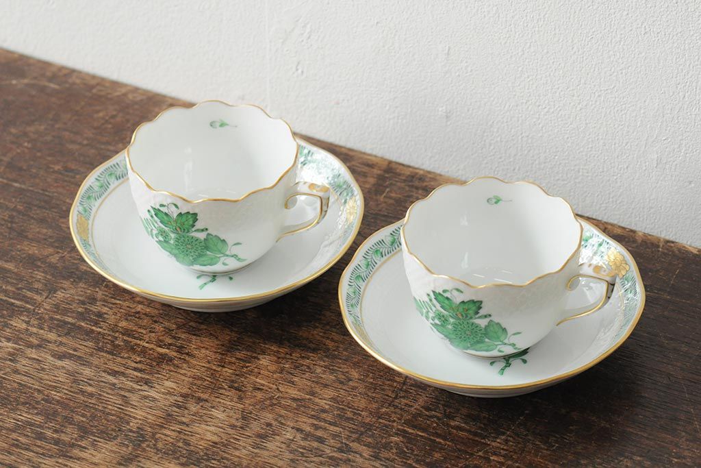 【骨董買取】ハンガリー HEREND(ヘレンド) アポニーグリーン カップ&ソーサー(皿、洋食器)を買取りました。